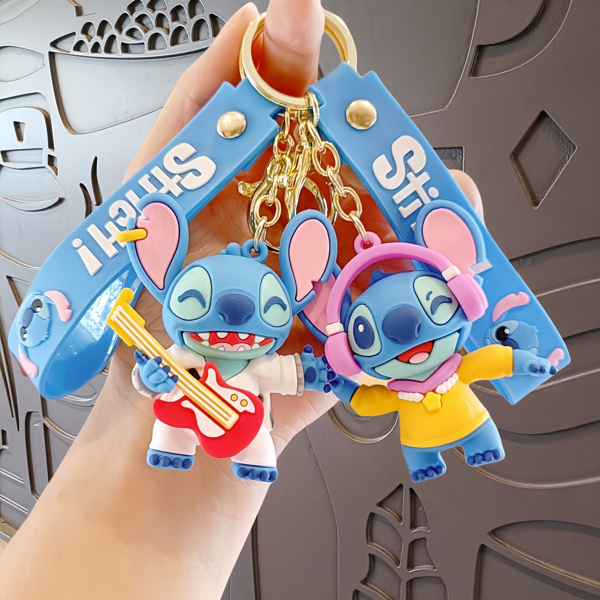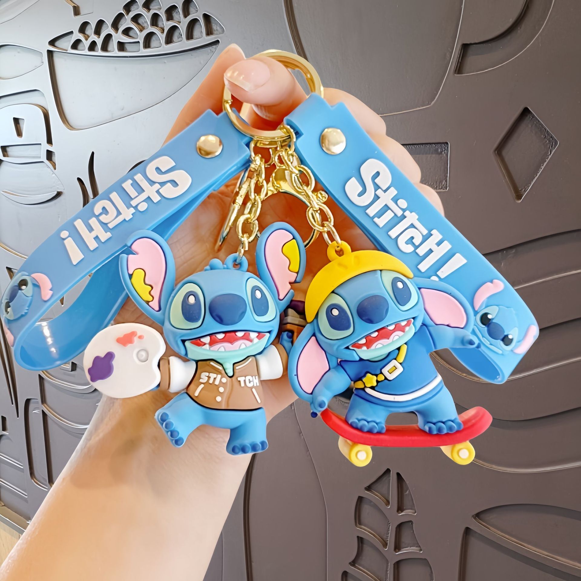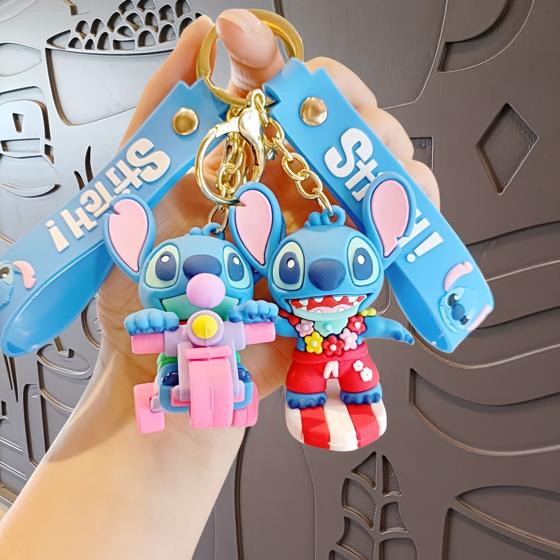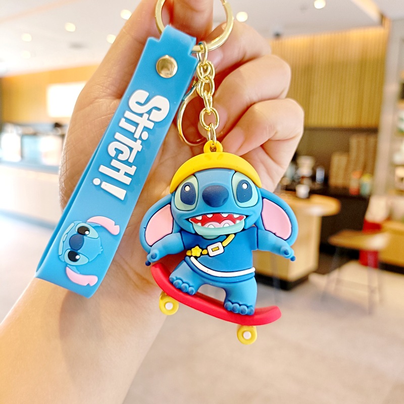 스티치 만화 키 체인 귀여운 스티치 인형 학교 가방 펜던트 인형 기계 작은 선물 키 체인 액세서리