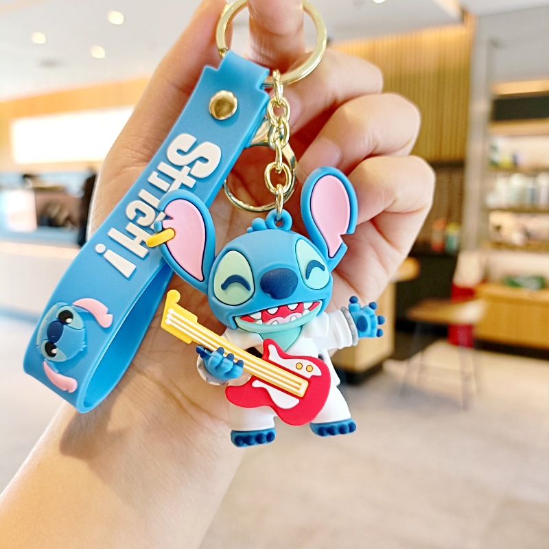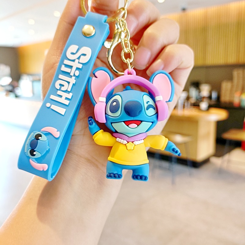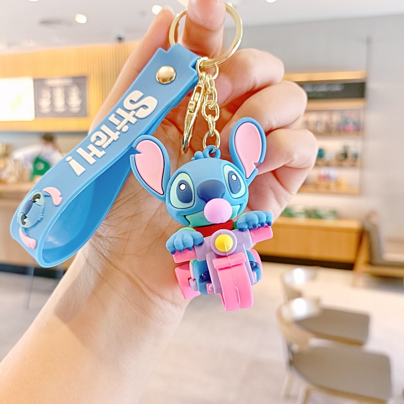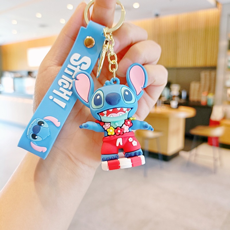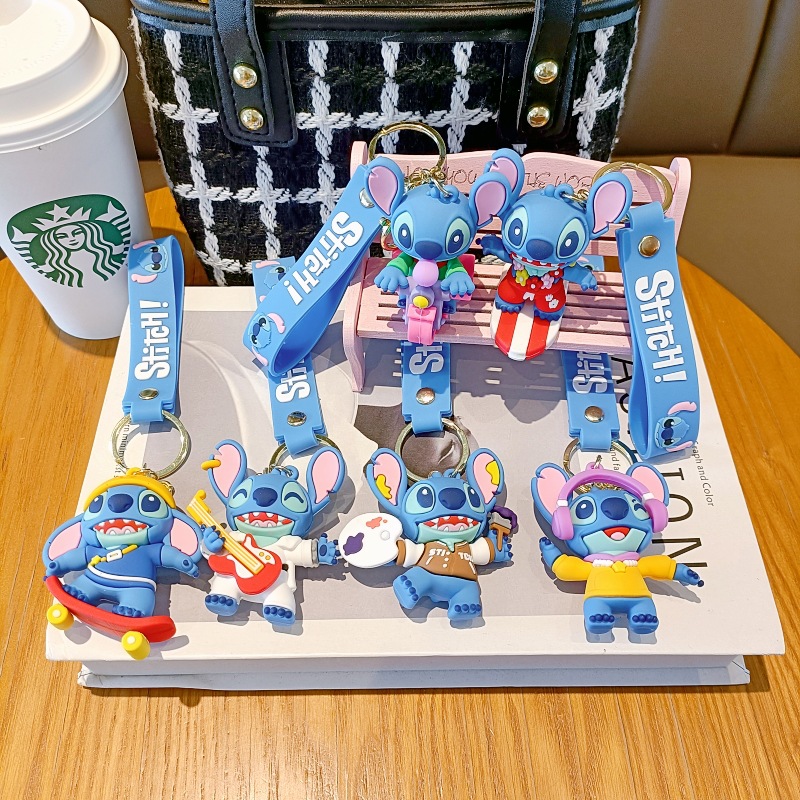 스티치 만화 키 체인 귀여운 스티치 인형 학교 가방 펜던트 인형 기계 작은 선물 키 체인 액세서리스토어 가기
