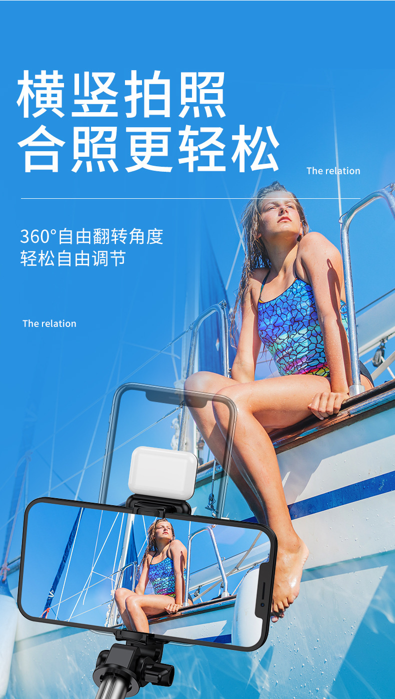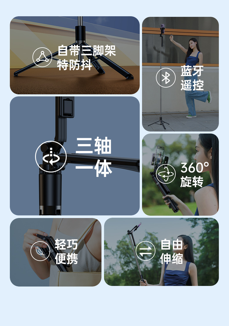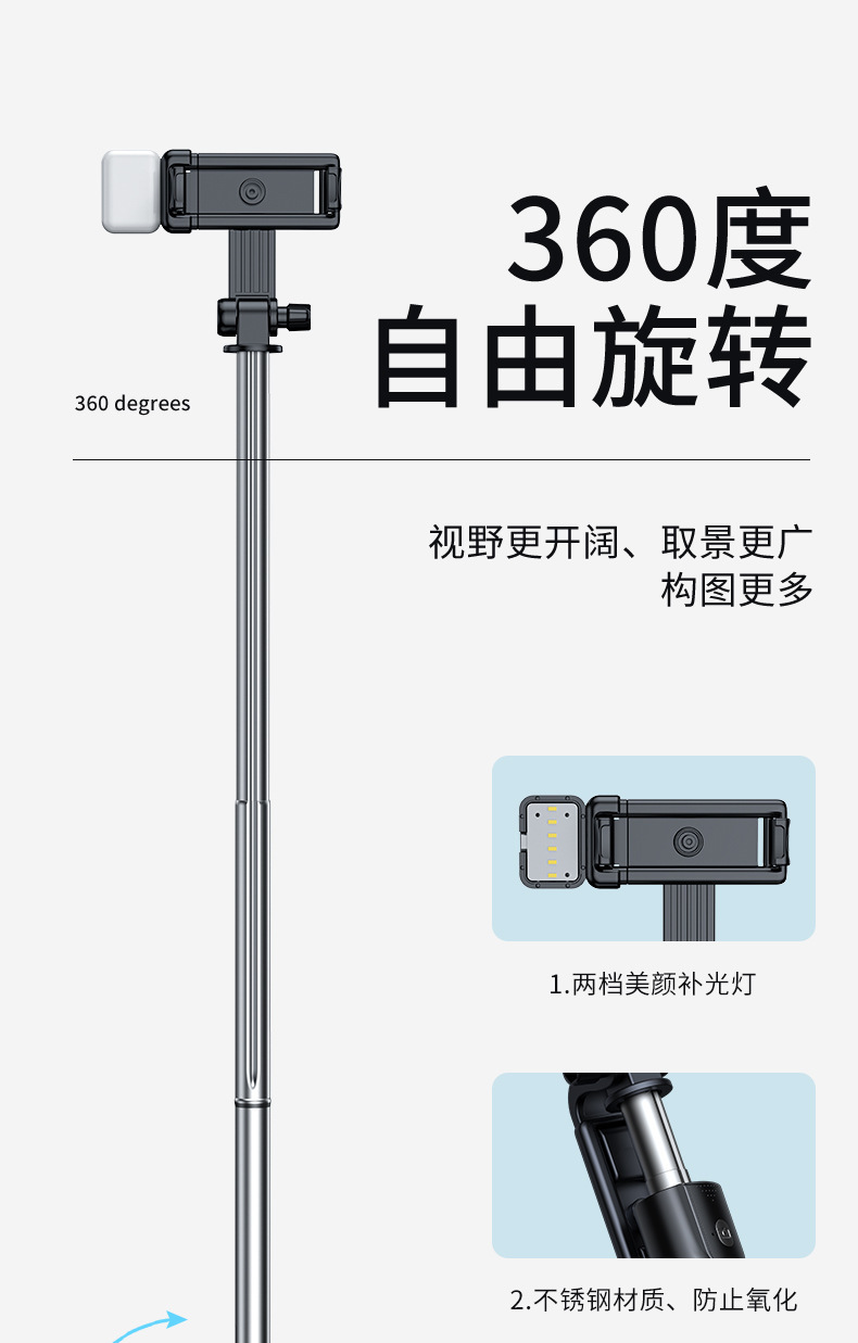 2025년 신형 셀카봉 삼각대, 휴대폰 호환 블루투스 셀카, 360도 회전, 여행용, 라이브 방송용