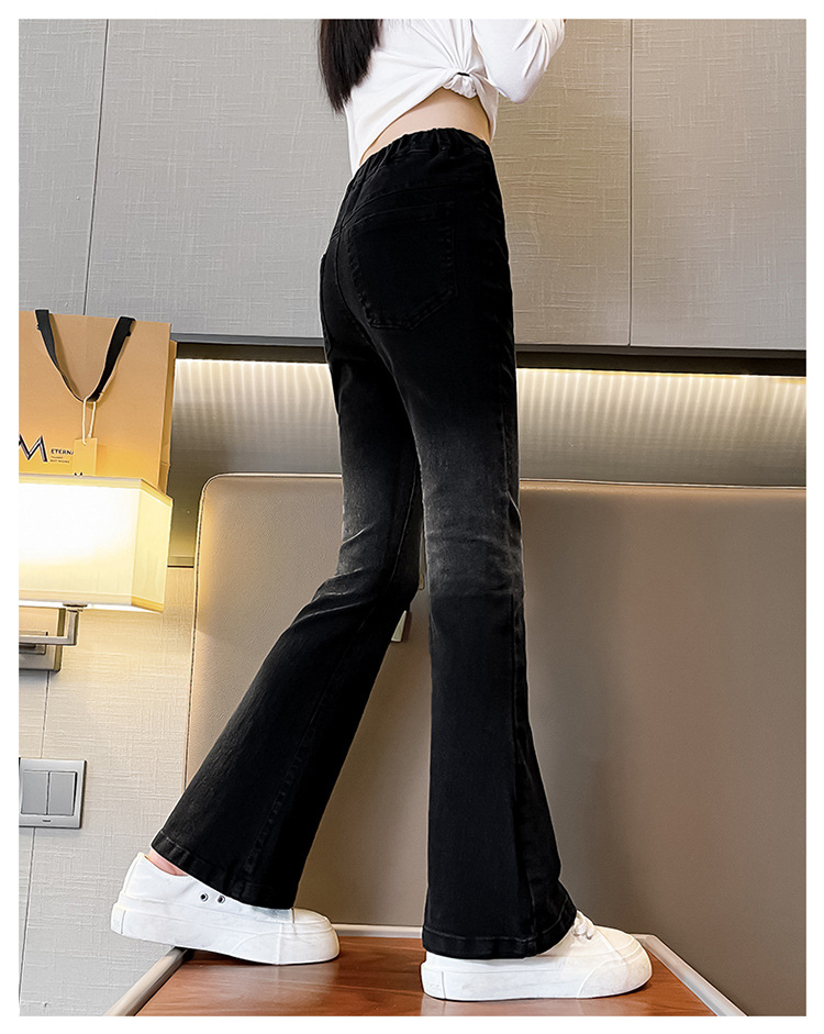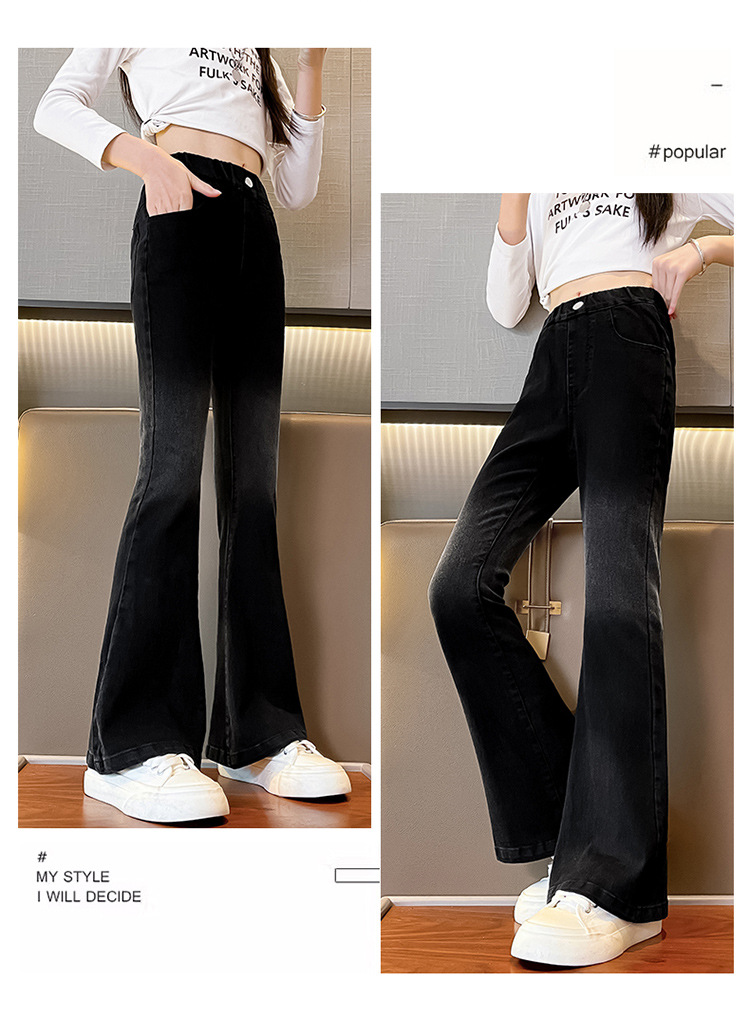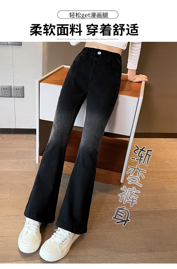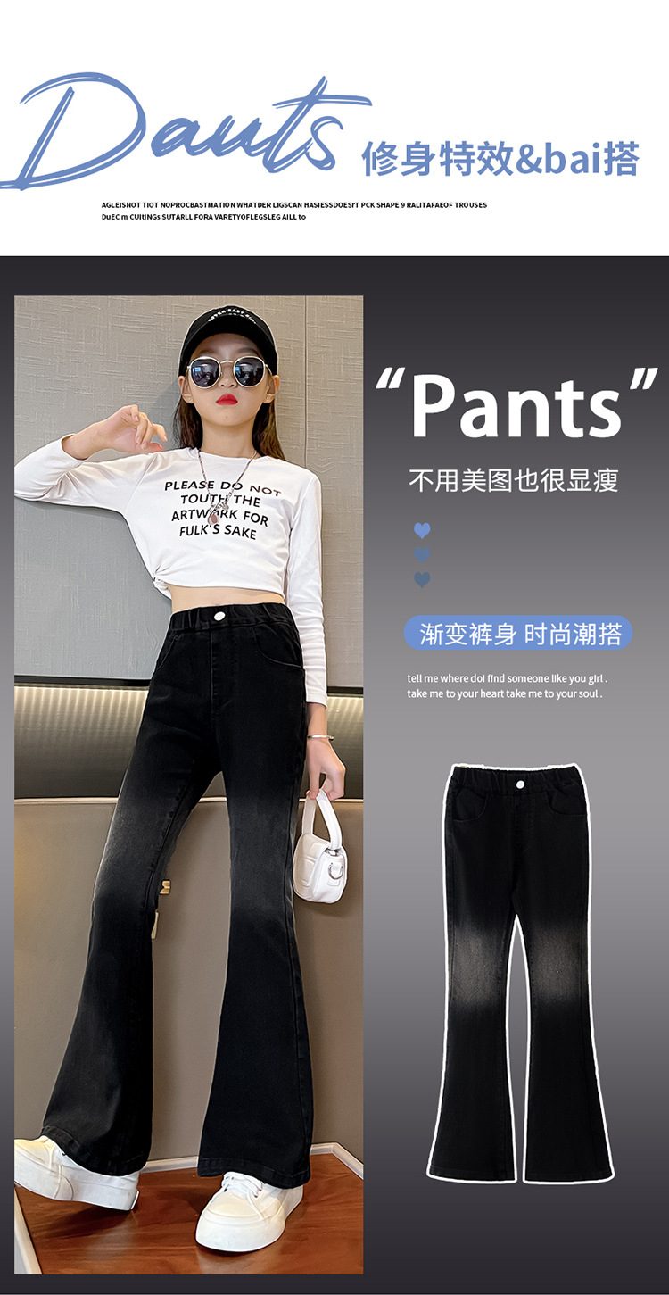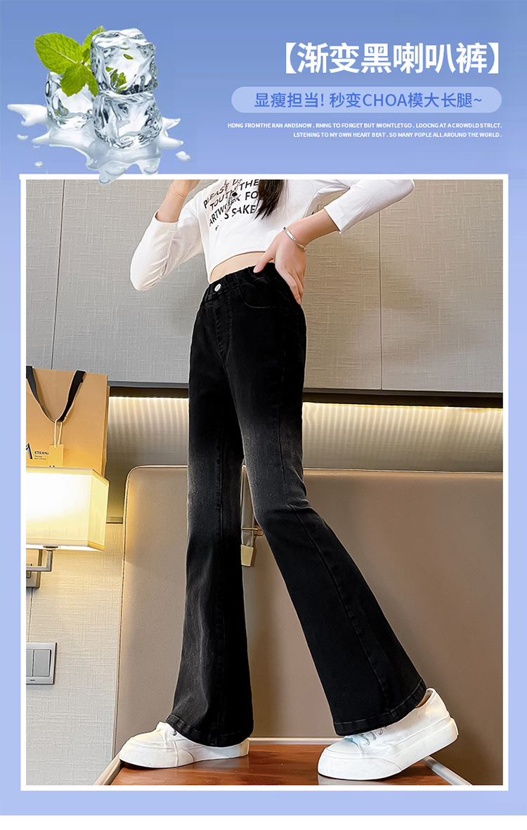소녀 청바지 2023 봄과 가을 새로운 서양식 캐주얼 바지 어린이 한국 스타일 트렌디 그라디언트 슬림 핏 플래 든 바지