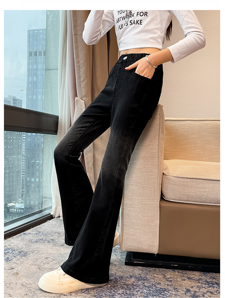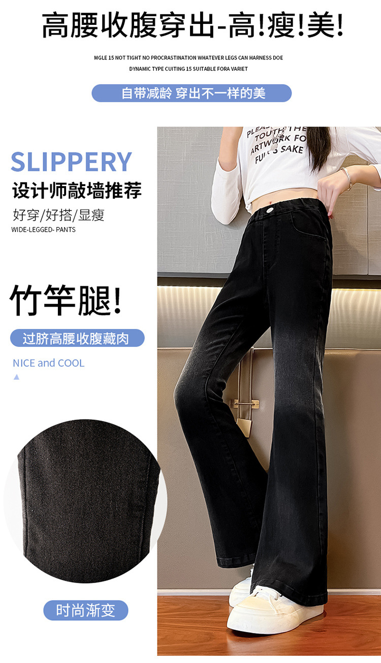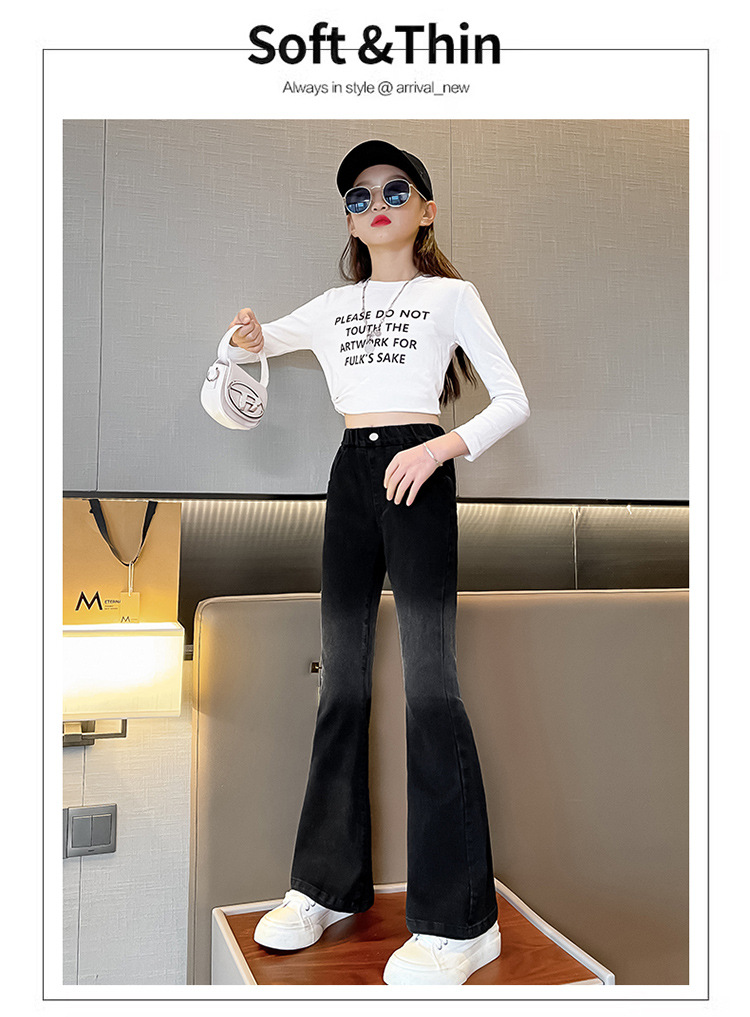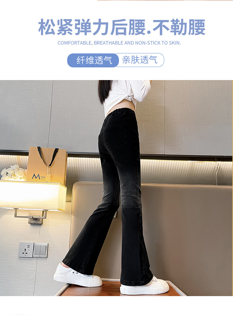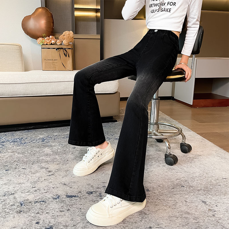 소녀 청바지 2023 봄과 가을 새로운 서양식 캐주얼 바지 어린이 한국 스타일 트렌디 그라디언트 슬림 핏 플래 든 바지