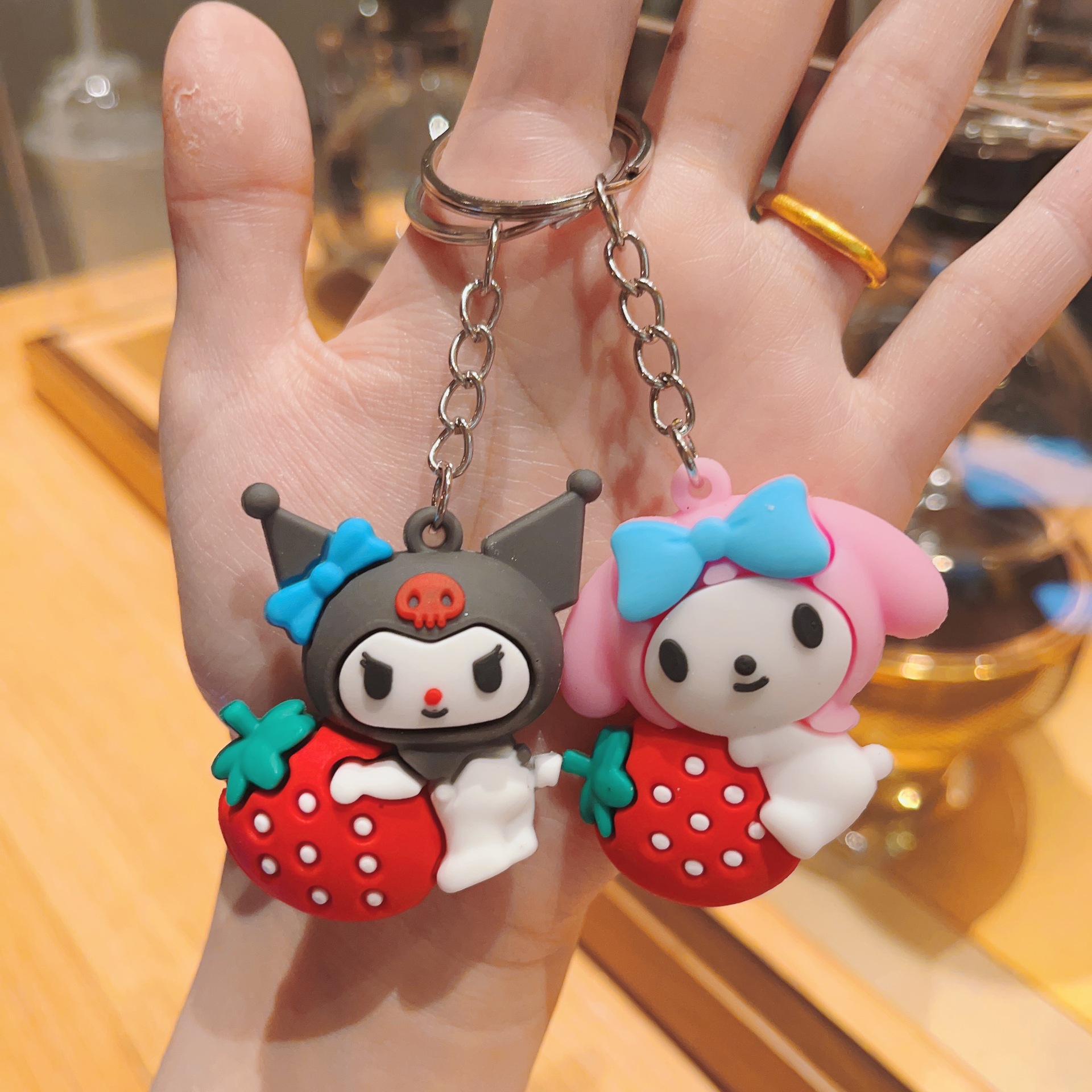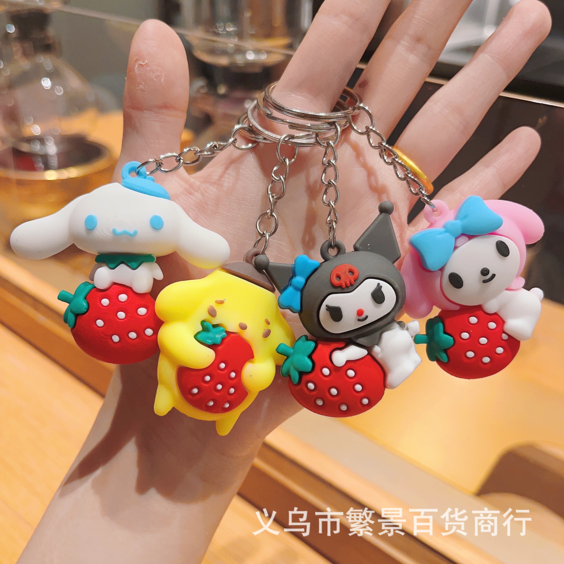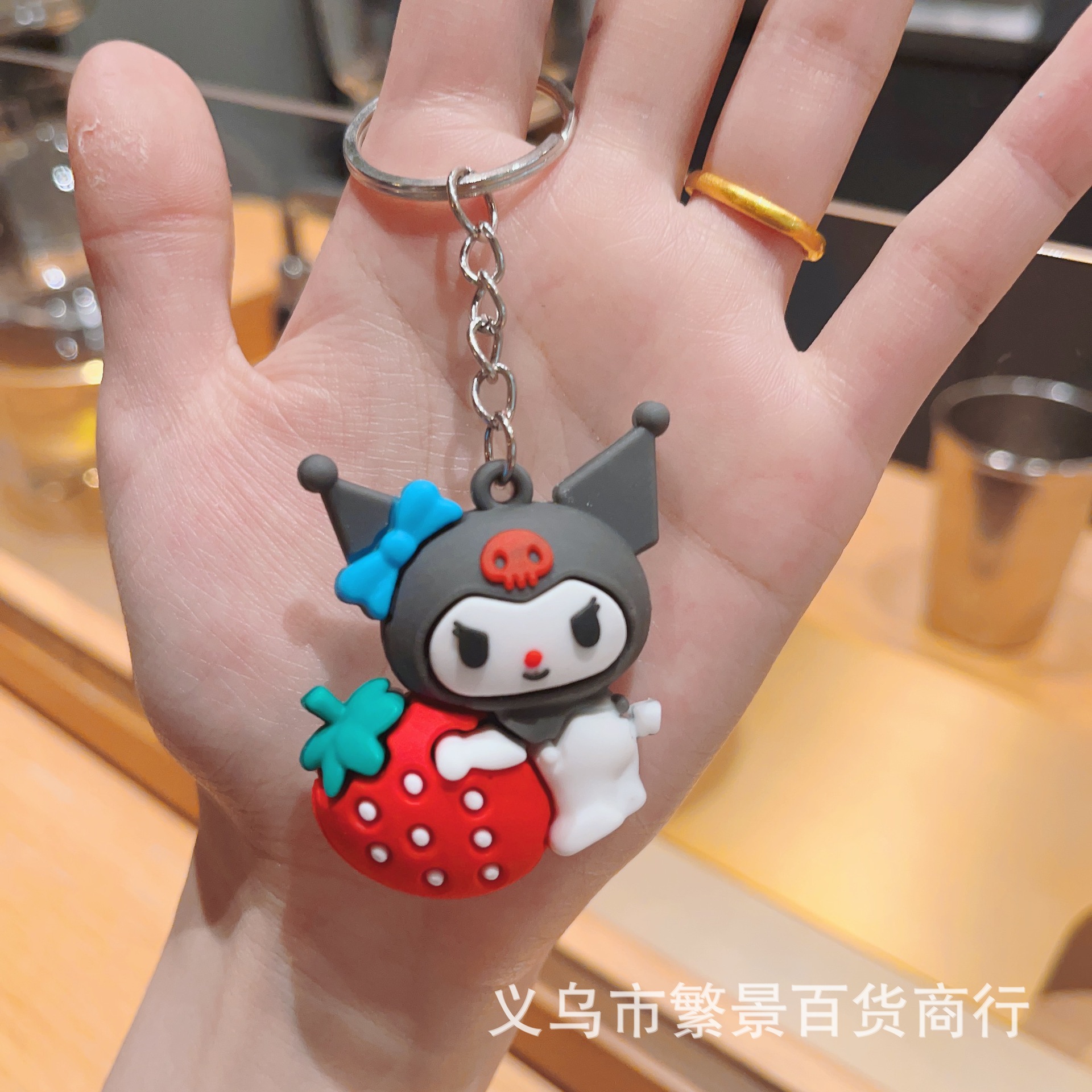 귀여운 딸기 과일 Kulomi 인형 키 체인 만화 가방 자동차 펜던트 펜던트 활동 선물 도매