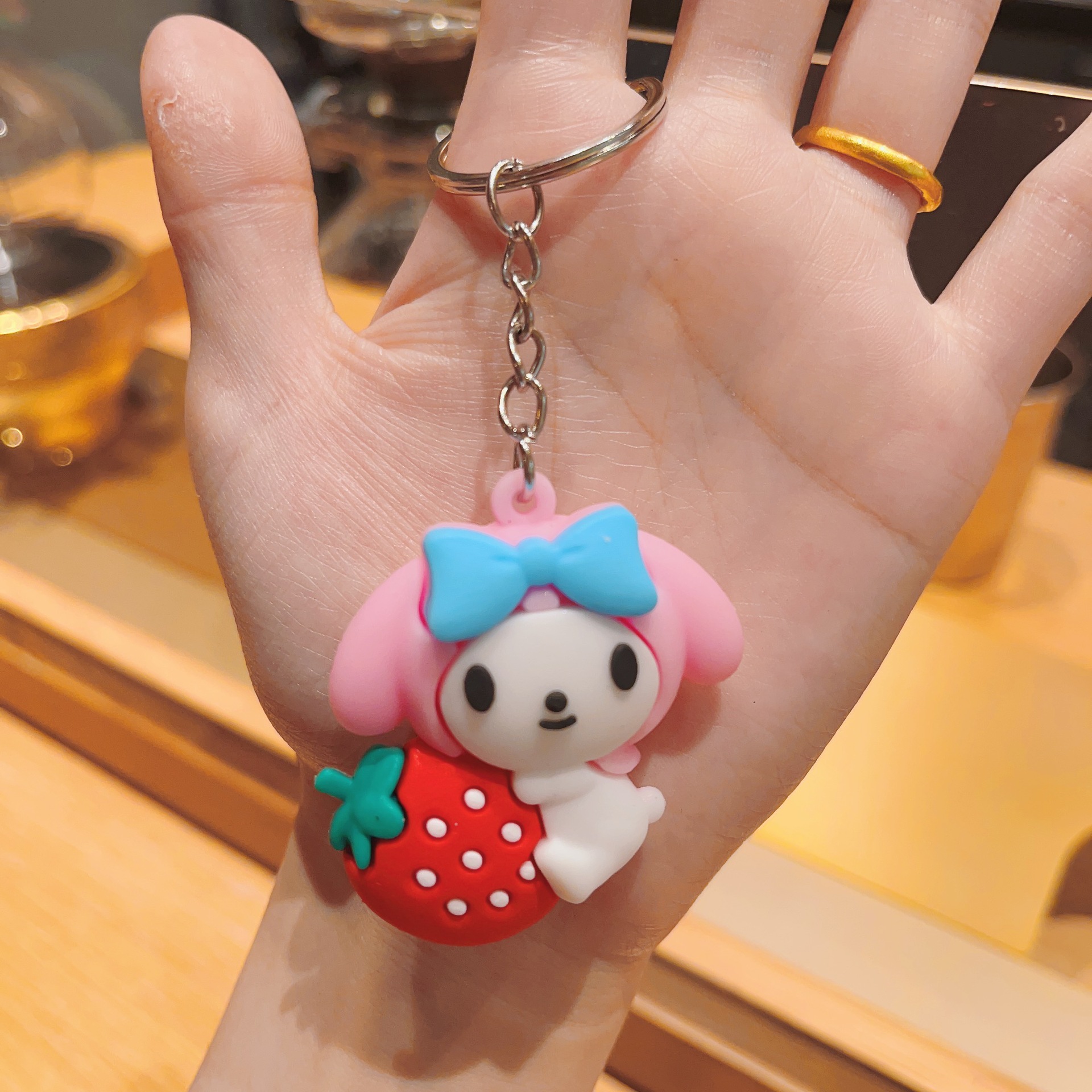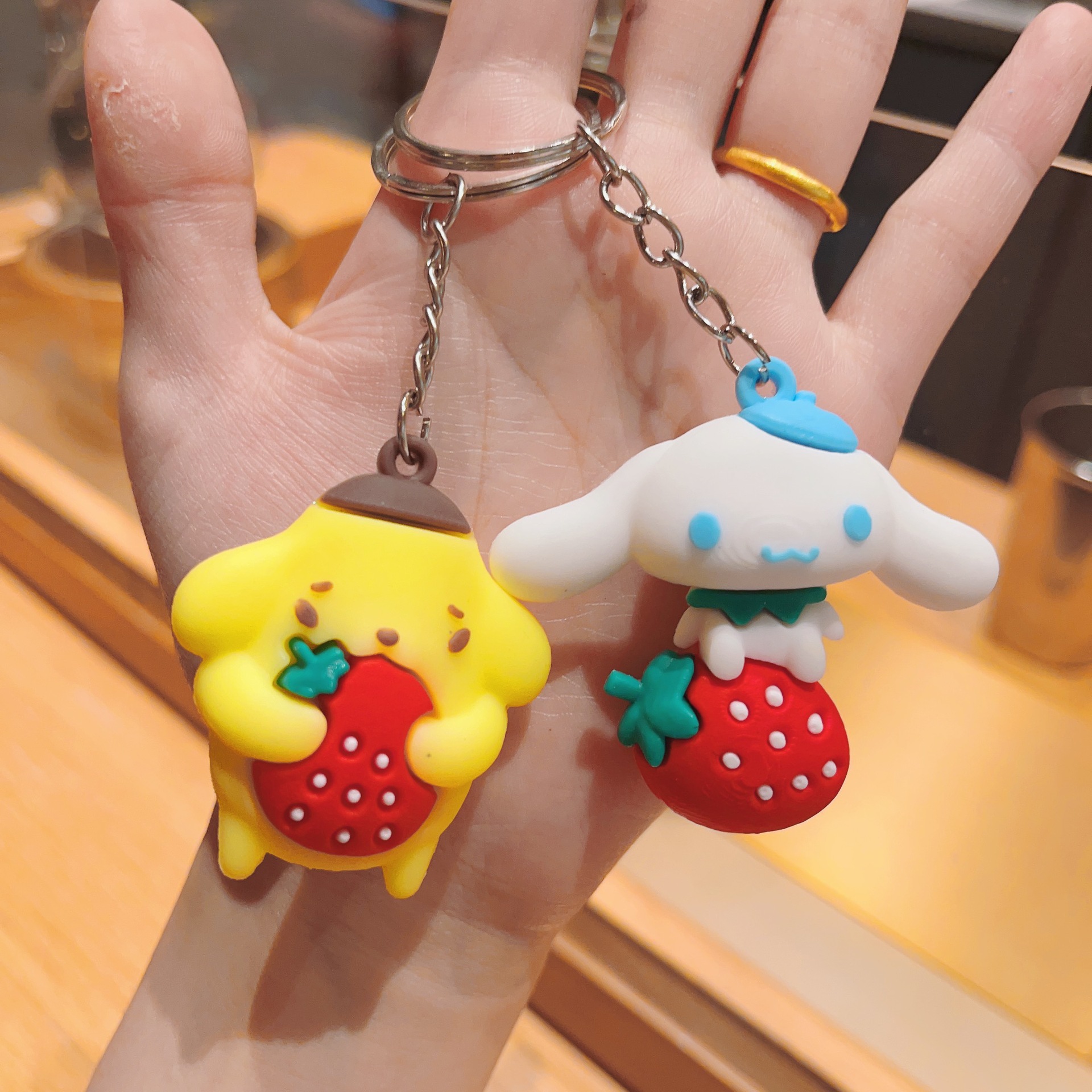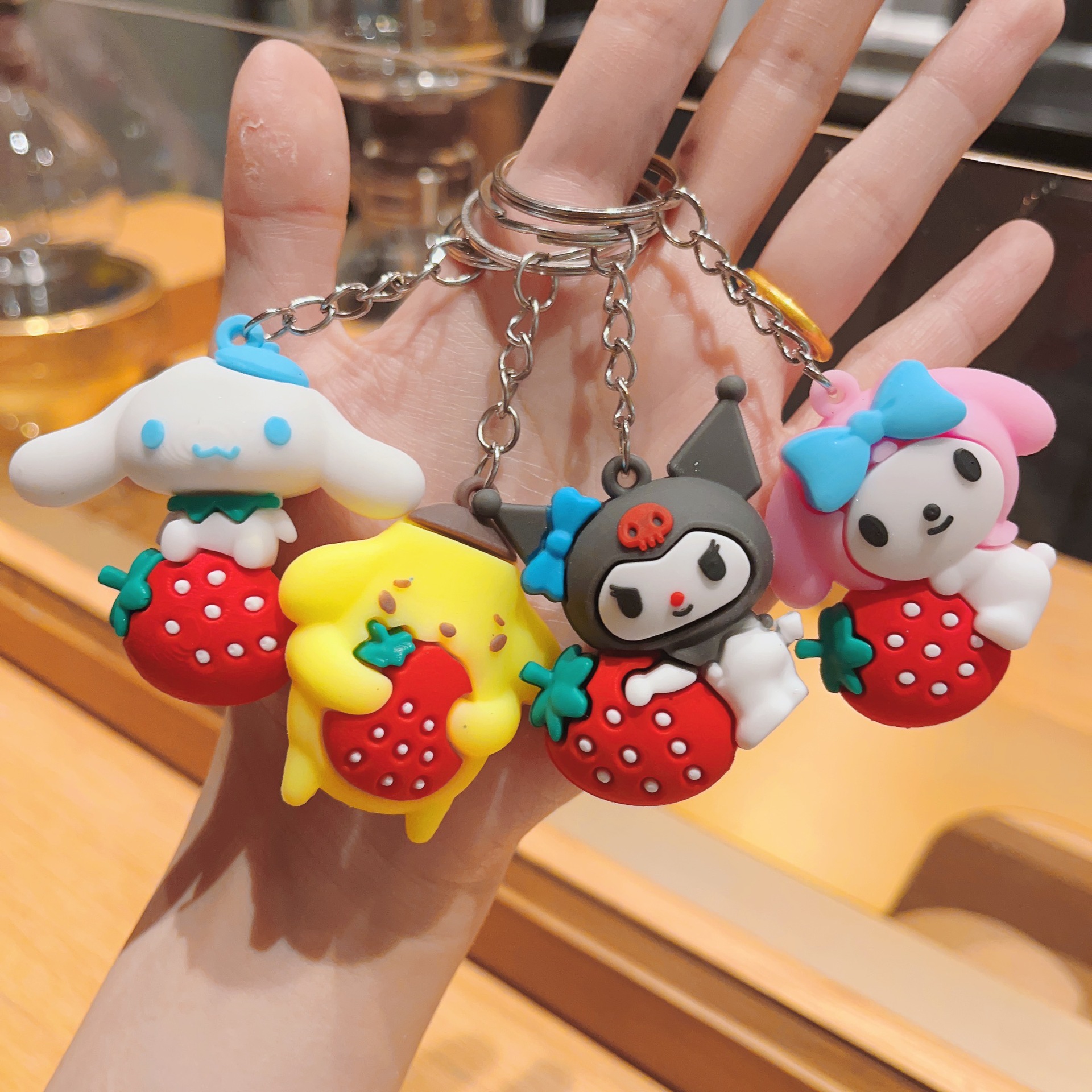 귀여운 딸기 과일 Kulomi 인형 키 체인 만화 가방 자동차 펜던트 펜던트 활동 선물 도매
