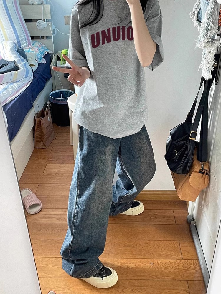 미국 레트로 어깨 반팔 티셔츠 여성 커플 2024 년 여름 새로운 디자인 센스 니쉬 홍콩 스타일 반소매 탑스토어 가기