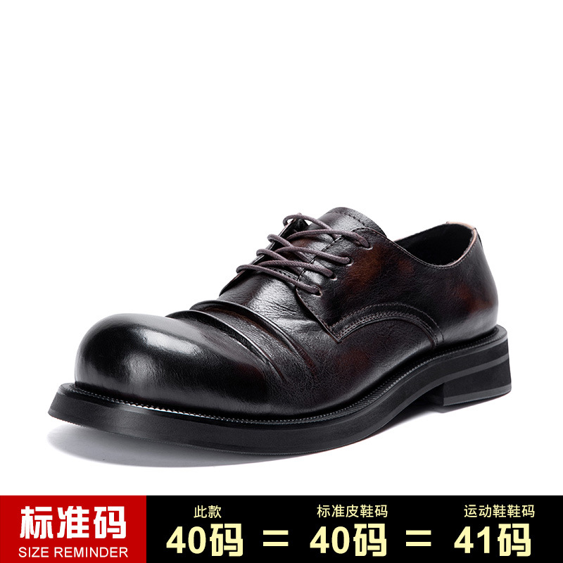 영국 비즈니스 캐주얼 큰 발가락 가죽 신발 남성 툴링 두꺼운 단독 빈티지 라운드 발가락 강화 통근 더비 신발 정품 가죽 남성 신발스토어 가기