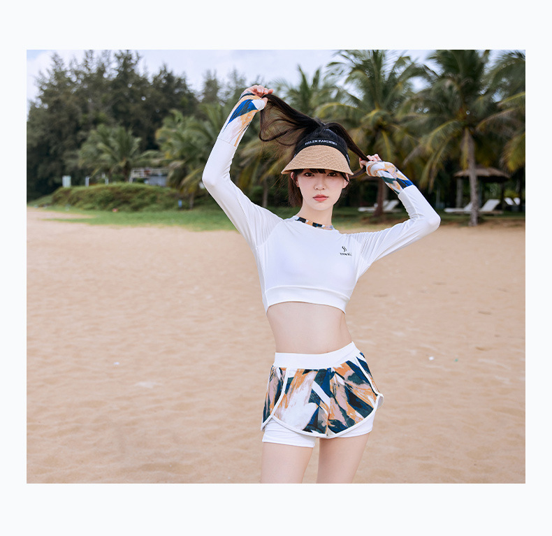 2024 새로운 수영복 여성용 스플릿 투피스 수영장 슬림 배꼽 커버 스포츠 복서 온천 수영복