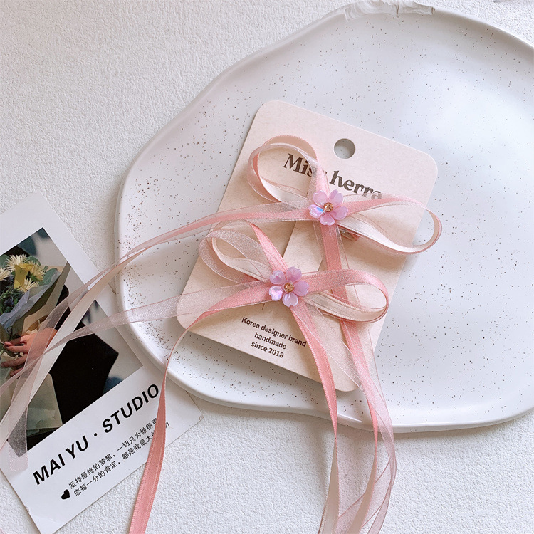 어린이 꽃 활 긴 리본 헤어 클립 여아 한후 헤드웨어 페어 클립 달콤한 공주 헤어 클립