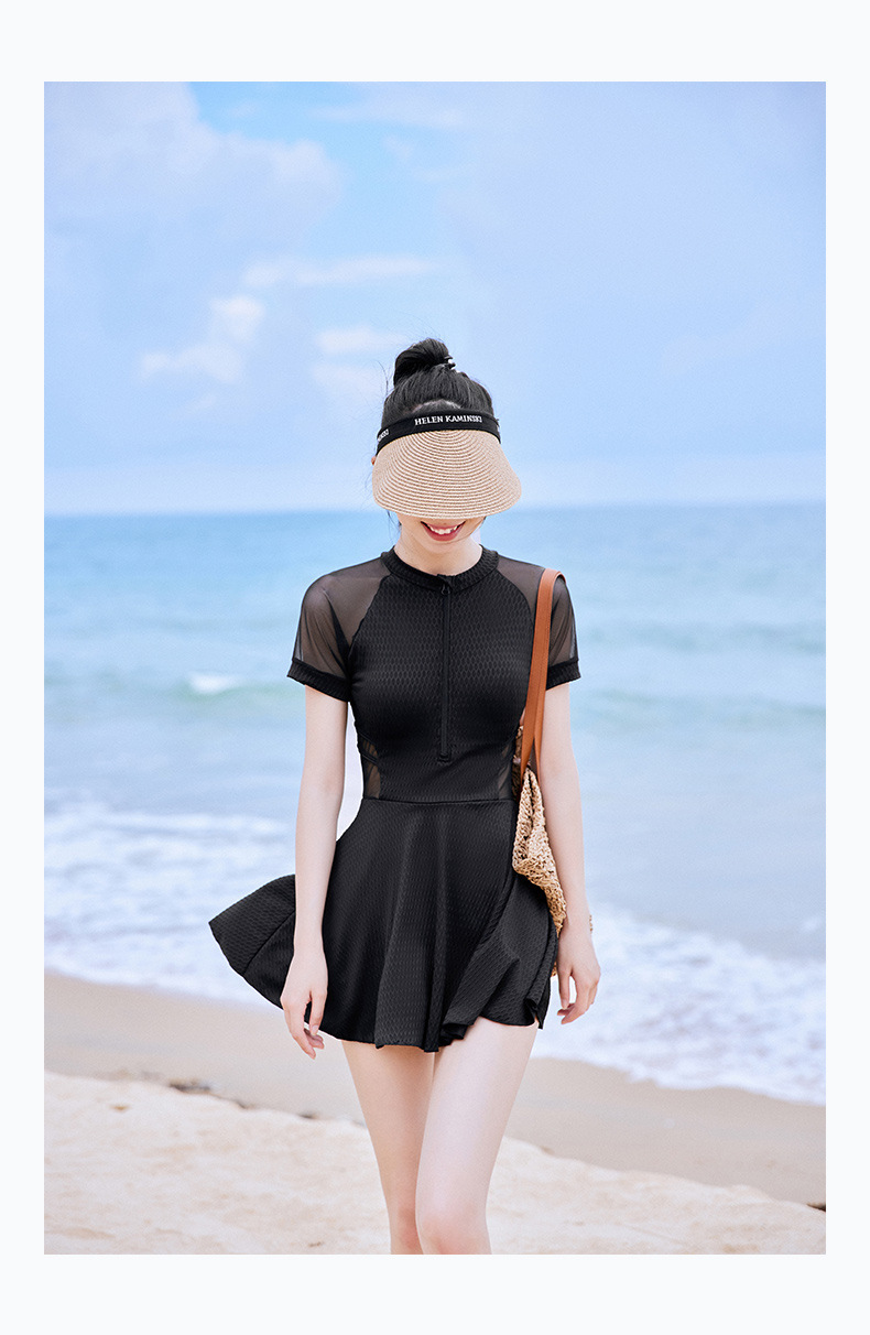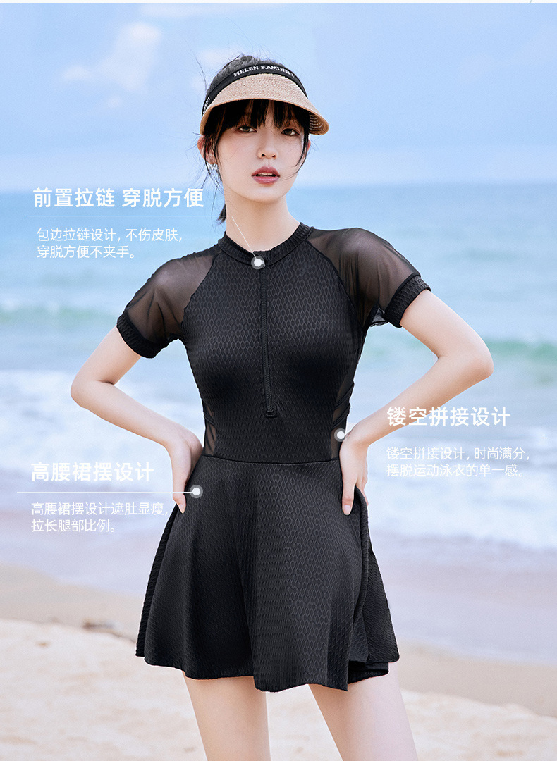 2024 새로운 수영복 여성의 보수적 인 원피스 수영장 슬림 배꼽 스포츠 플랫 앵글 온천 수영 세트스토어 가기