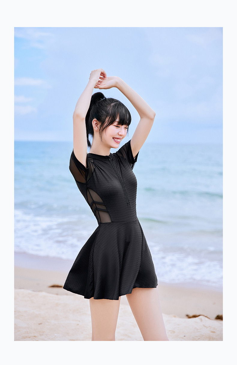 2024 새로운 수영복 여성의 보수적 인 원피스 수영장 슬림 배꼽 스포츠 플랫 앵글 온천 수영 세트