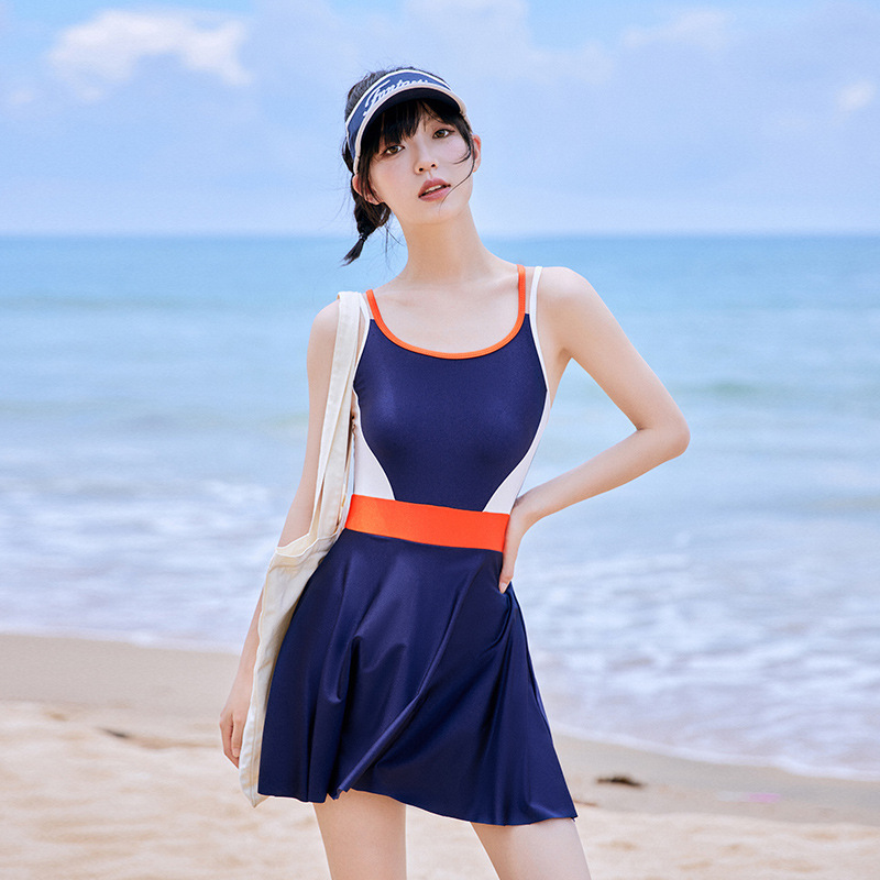 2024 새로운 수영복 여성의 보수적 인 원피스 수영장 슬림 배꼽 스포츠 플랫 앵글 온천 수영 세트스토어 가기