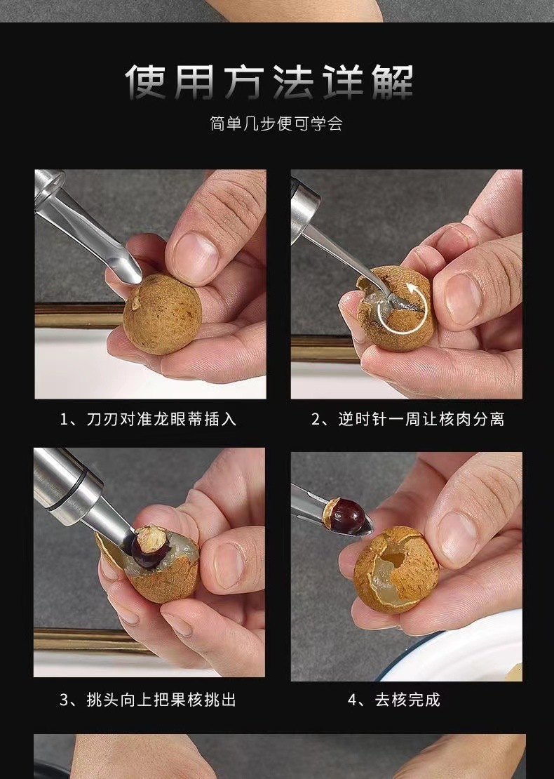 Longan 핵심 제거 도구 Longan 고기 제거 고기 제거 새우 라인 제거 칼 Longan 다기능 스테인레스 스틸 쉘 제거스토어 가기
