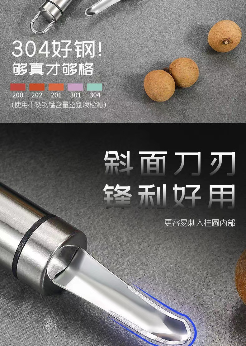 Longan 핵심 제거 도구 Longan 고기 제거 고기 제거 새우 라인 제거 칼 Longan 다기능 스테인레스 스틸 쉘 제거