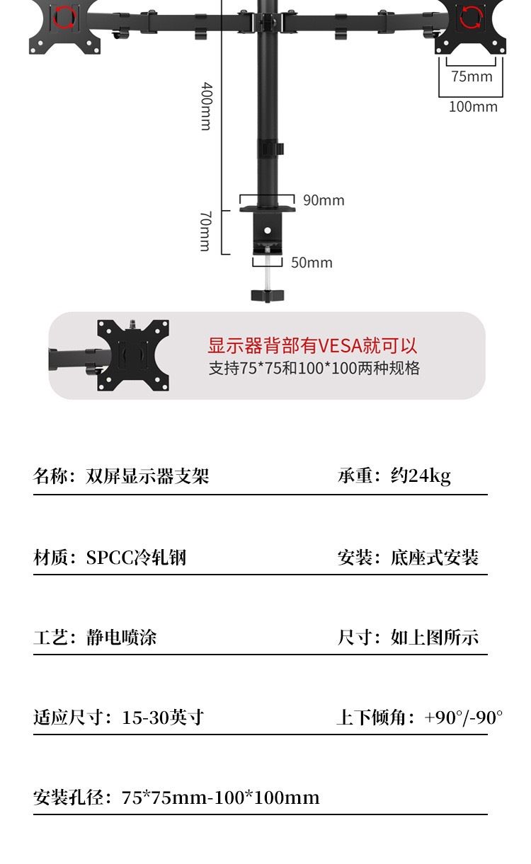 • 블랙 듀얼 스크린 조절식 모니터 스탠드