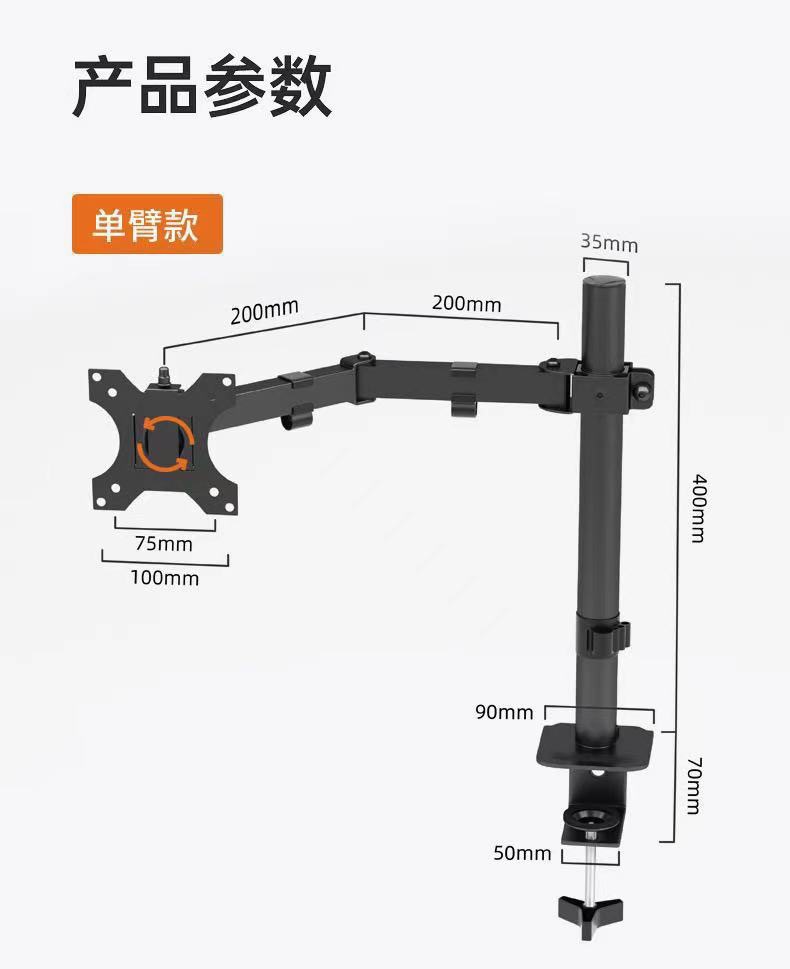 • 검정색 단일 암 조절식 모니터 스탠드