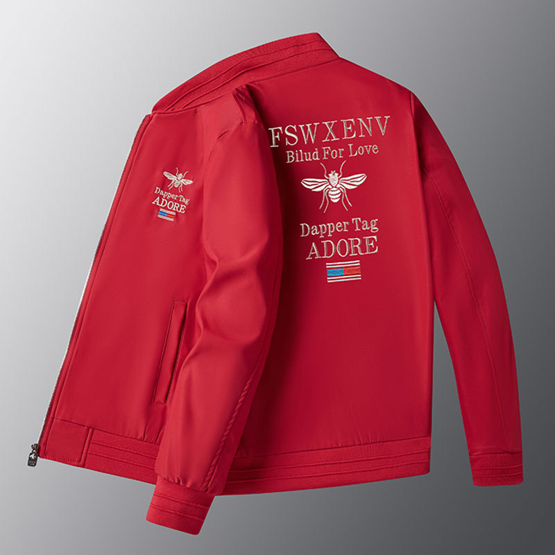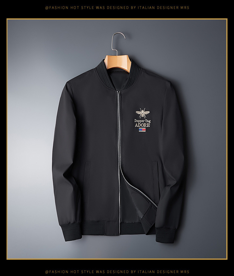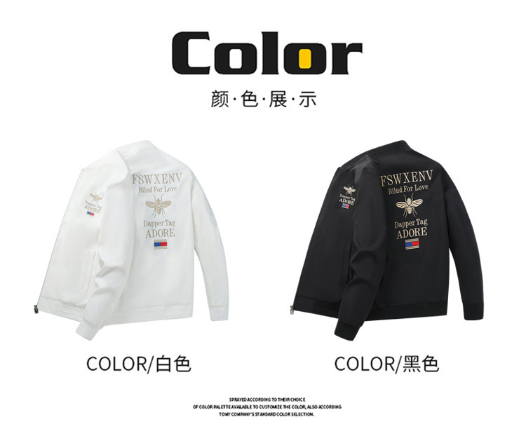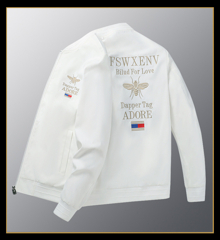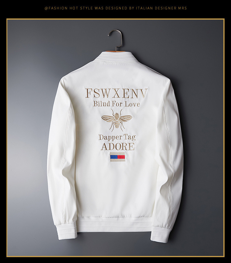 트렌디 한 브랜드 하이 엔드 화이트 리틀 비 자수 재킷 남자 캐주얼 유럽 역 유행 잘 생긴 야구 세트 재킷스토어 가기