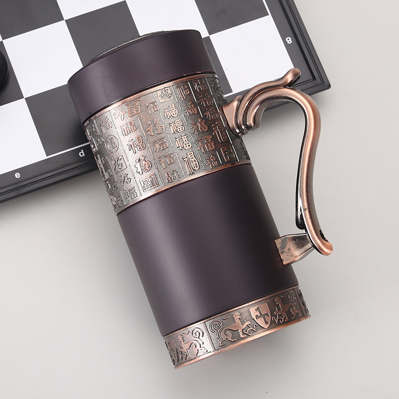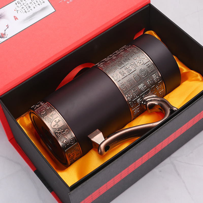 새로운 보라색 모래 라이너 보온병 머그잔 남성 사무실 차 손잡이 물 컵 비즈니스 선물 세트 물 컵 선물 상자