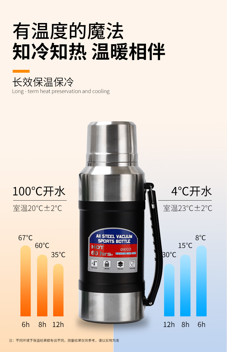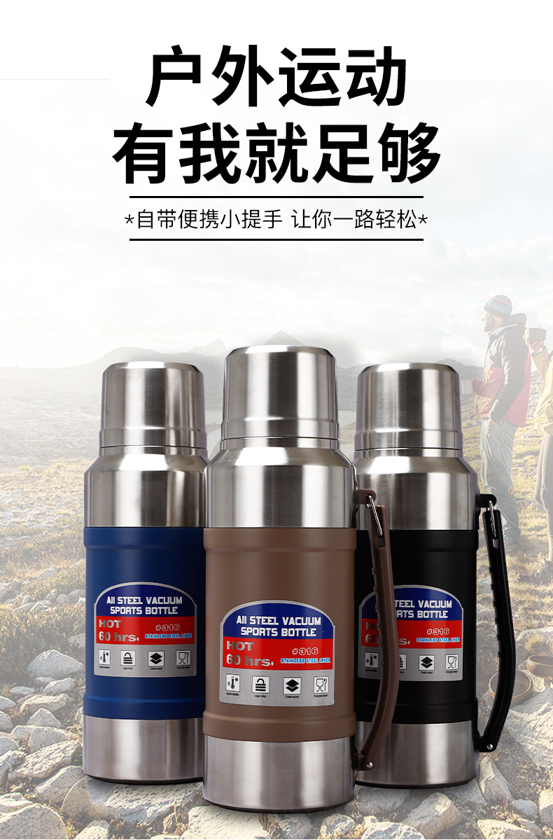 신형 316 올스틸 대용량 진공 보온병 휴대용 야외 스포츠 등산 차량용 물병 도매