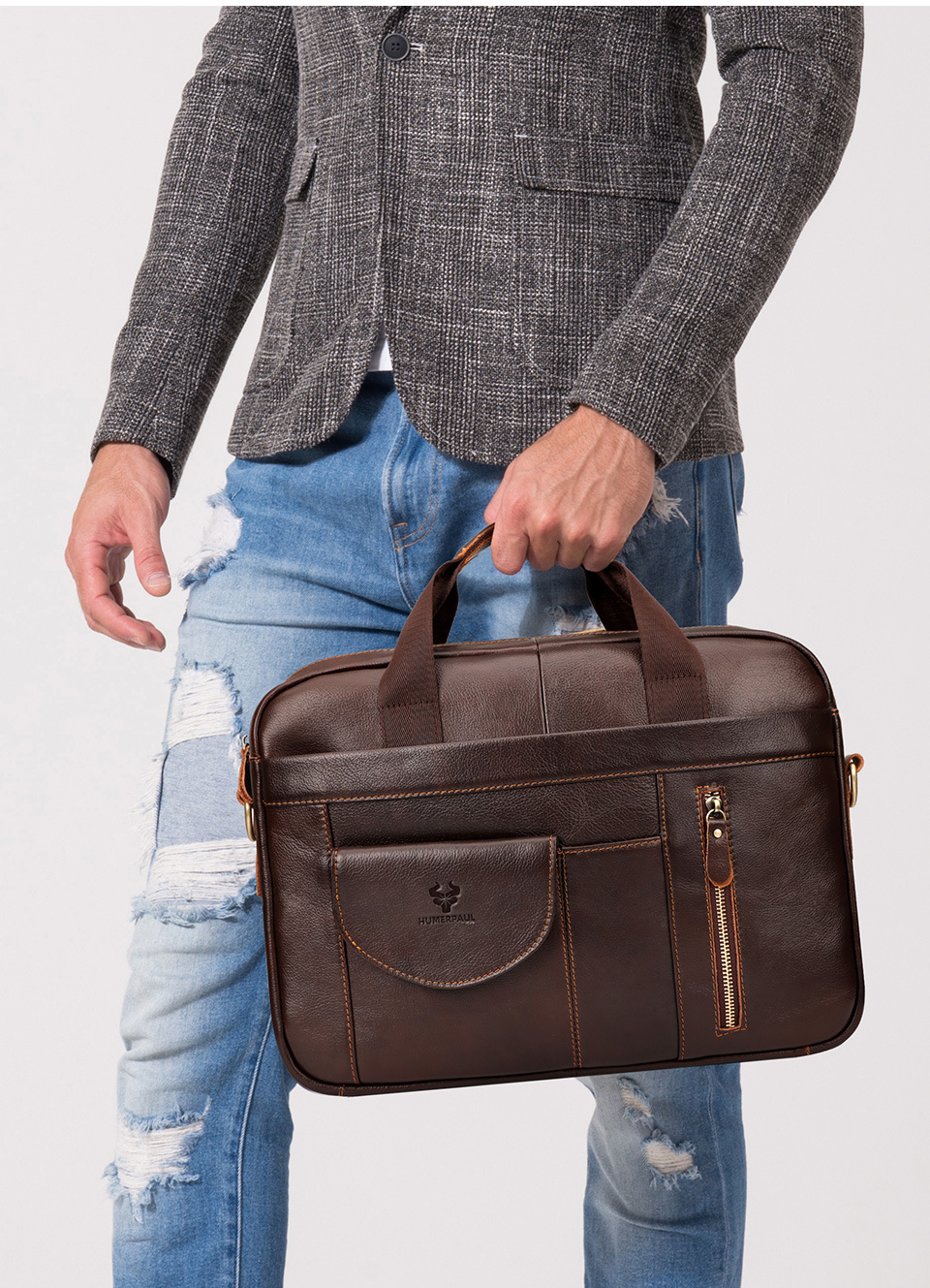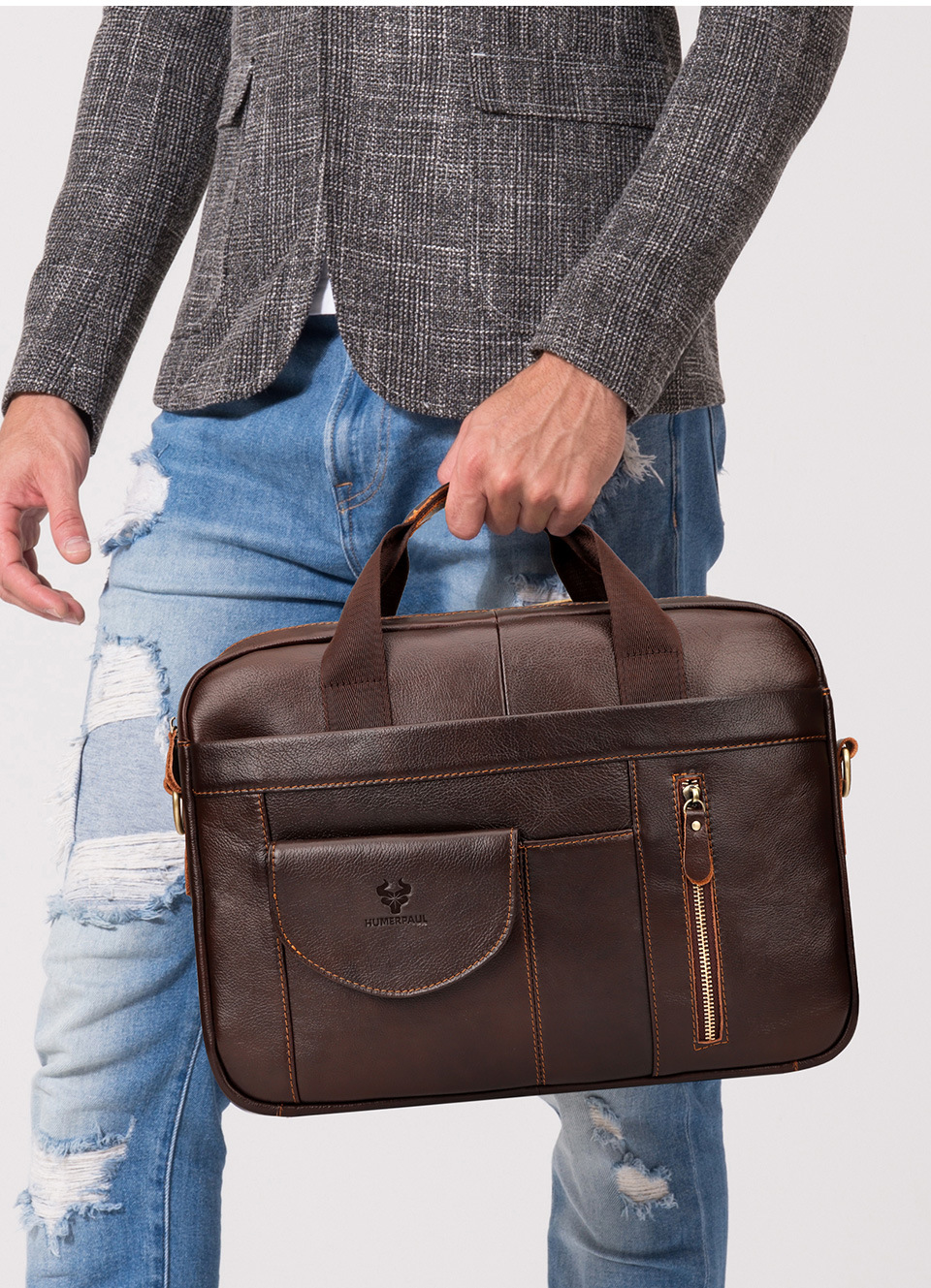Hummer Paul 국경 남성 가죽 서류 가방 탑 레이어 Cowhide 컴퓨터 가방 휴대용 어깨 비즈니스 배낭 도매스토어 가기