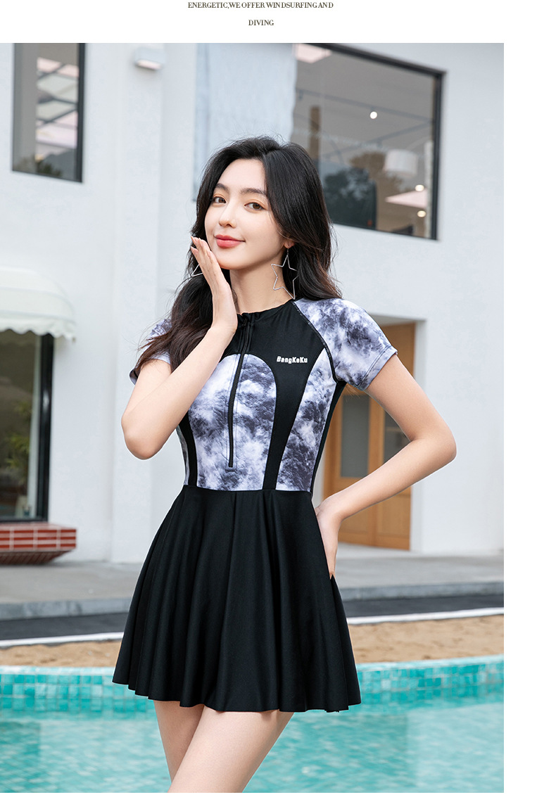 수영복 통통녀 원피스 스커트 스포츠 캐주얼 2024 뉴 벨리 커버 대형 MM 보수적 온천 수영복스토어 가기