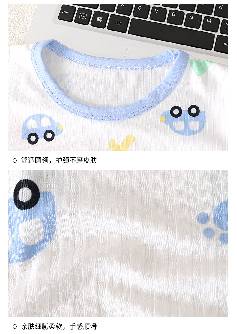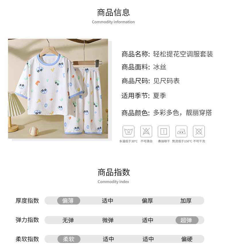 어린이 홈 세트 2024 여름 얇은 7 점 잠옷 소년 소녀를위한 에어컨 세트스토어 가기