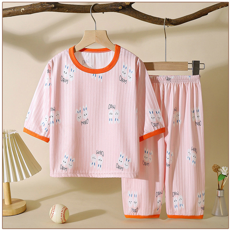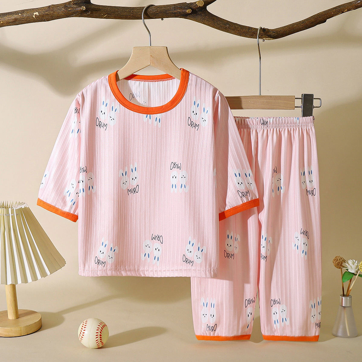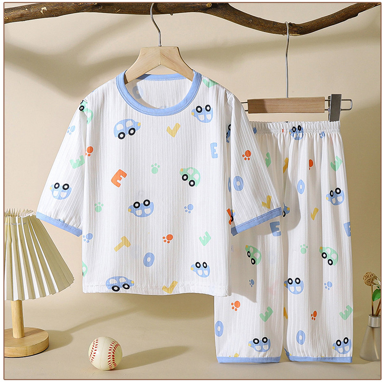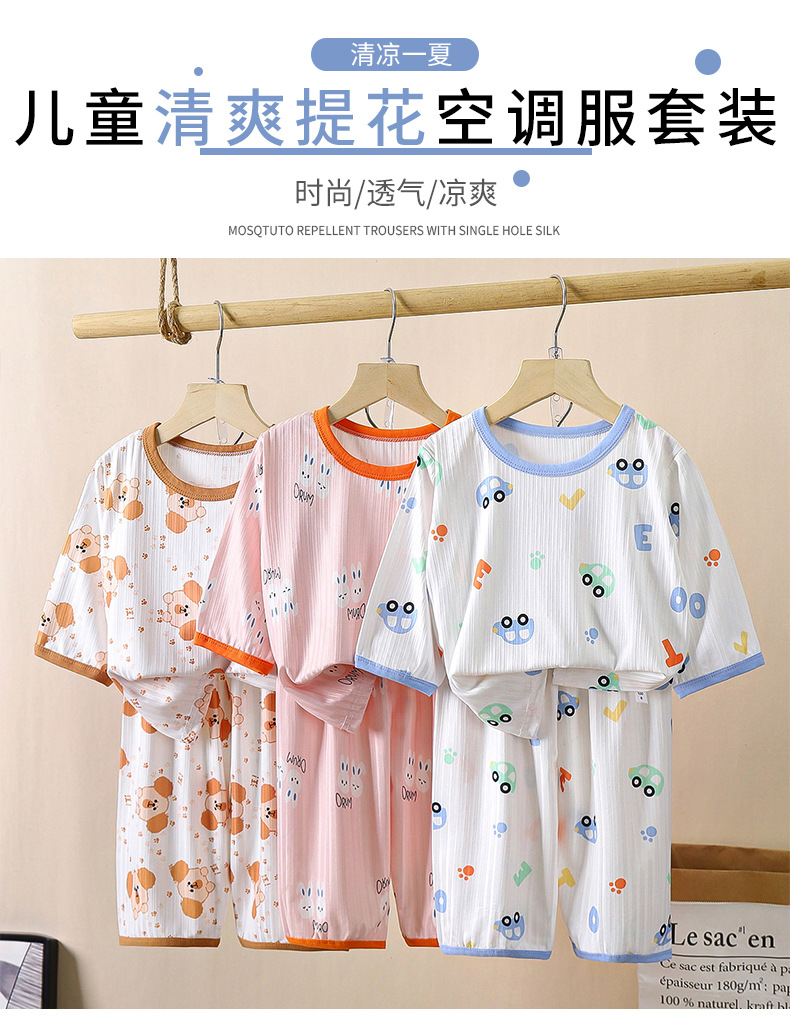 어린이 홈 세트 2024 여름 얇은 7 점 잠옷 소년 소녀를위한 에어컨 세트