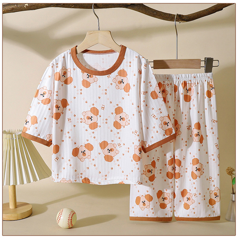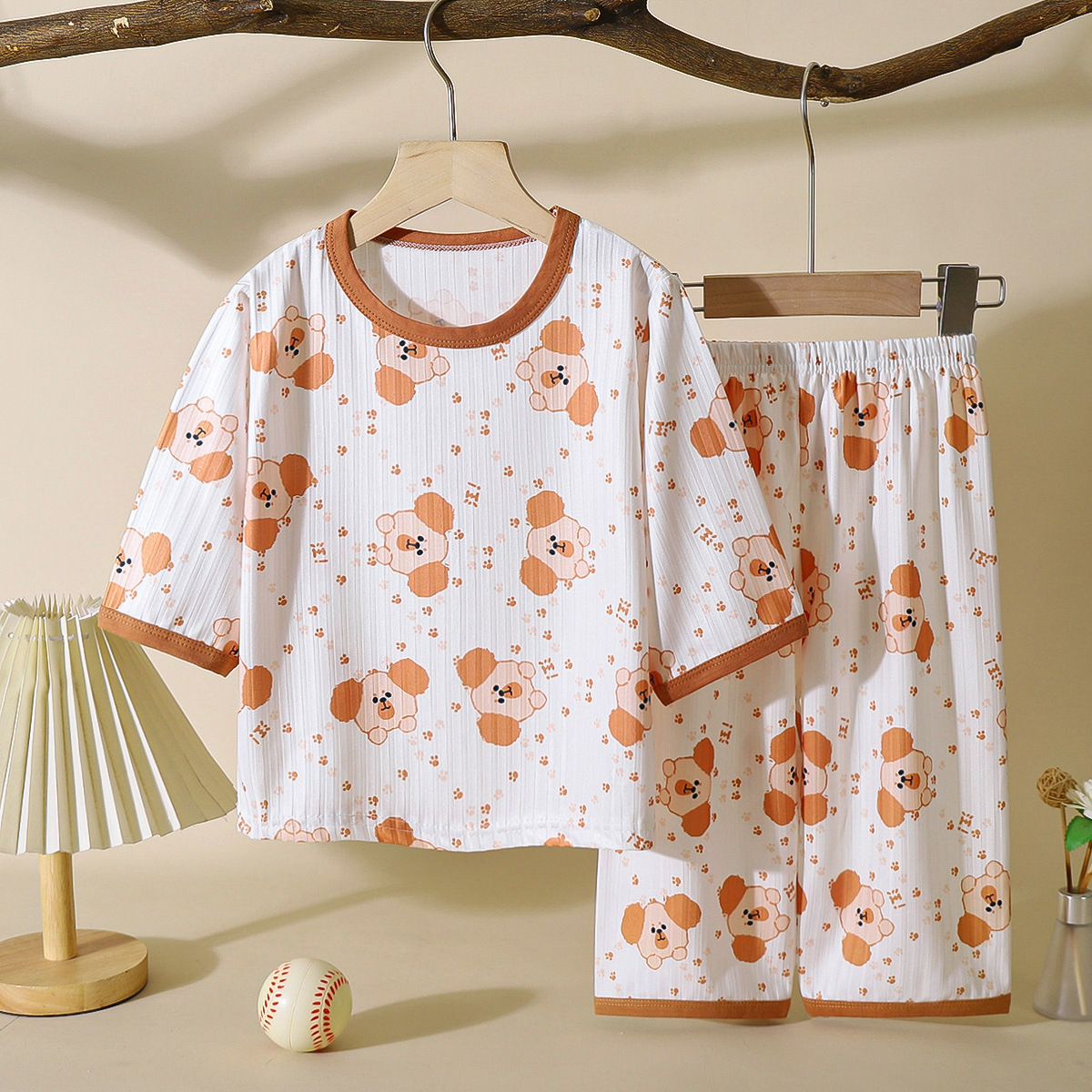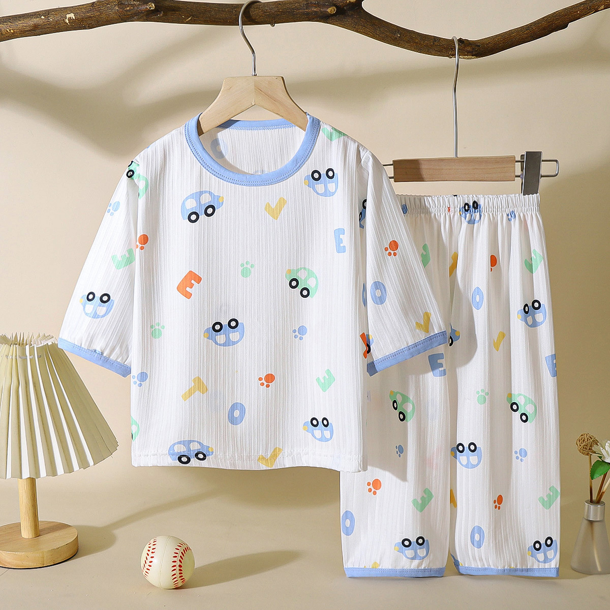 어린이 홈 세트 2024 여름 얇은 7 점 잠옷 소년 소녀를위한 에어컨 세트