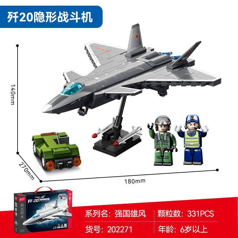 • 8898 8-in-1 J-20 전투기 510 입자 [휴대용 색상 상자] + 무료 2명
