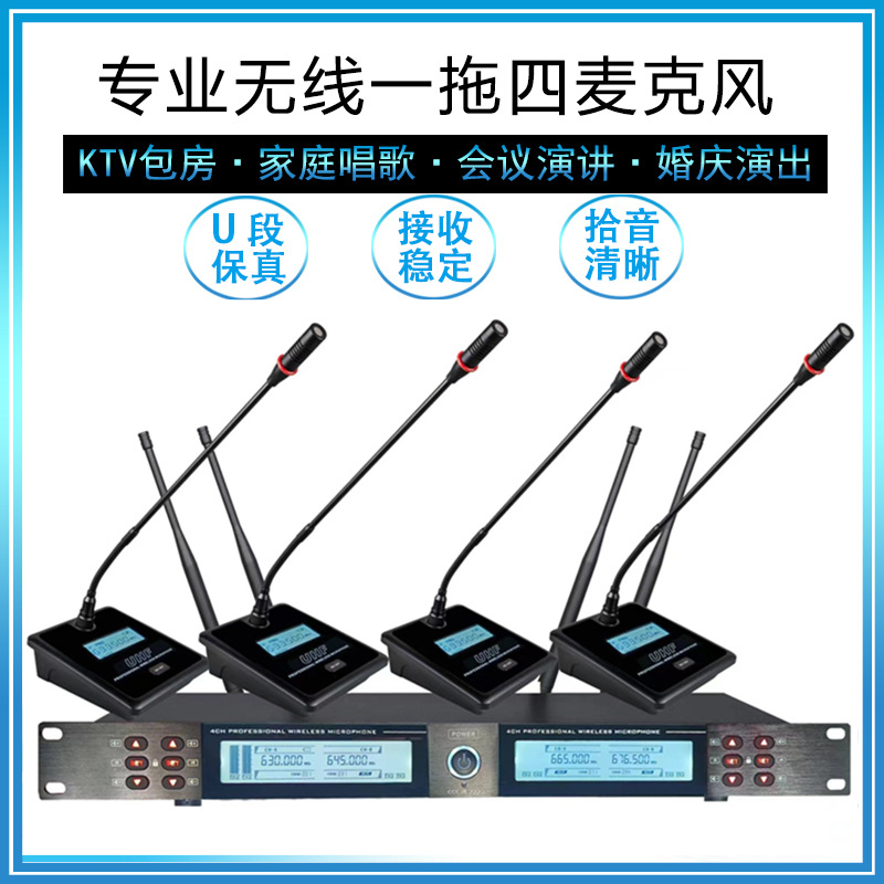1 대 4 무선 회의 마이크 웨딩 호스트 가족 KTV 핸드 헬드 마이크 무대 성능 타이 클립 헤드셋