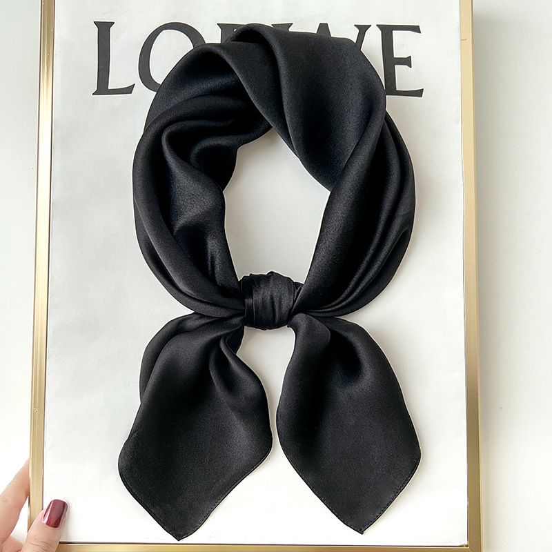순수한 검은 실크 뽕나무 실크 작은 광장 스카프 여성의 봄과 가을 여름 목 보호 스카프 장식 스카프 70x70
