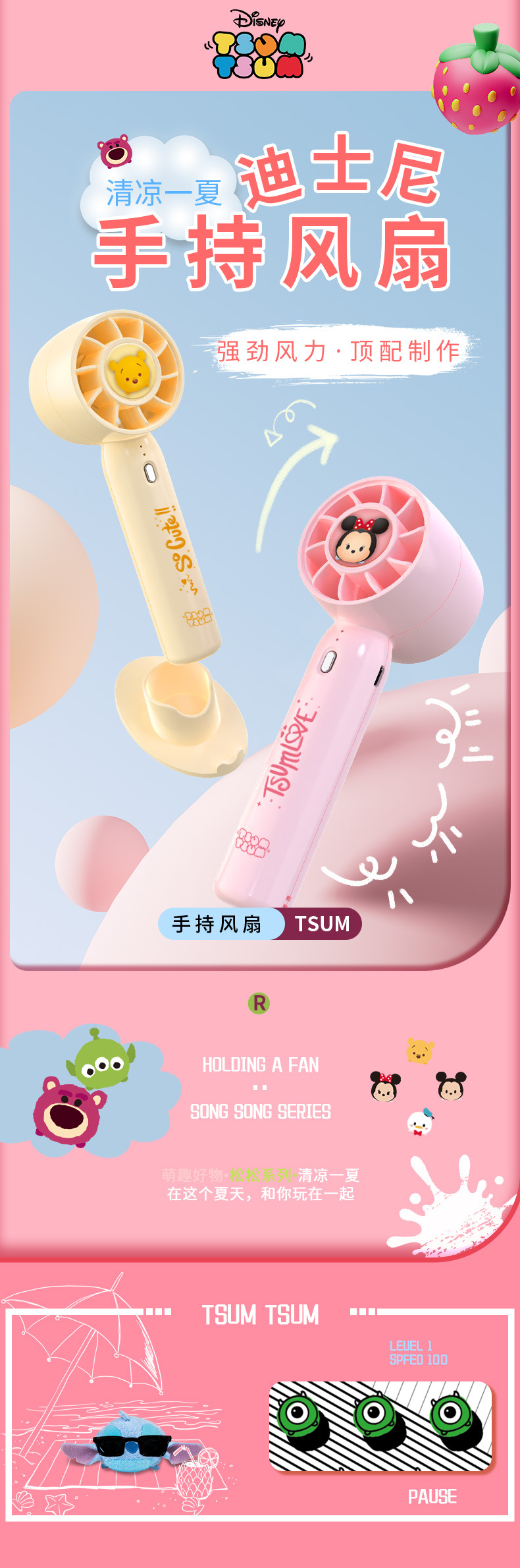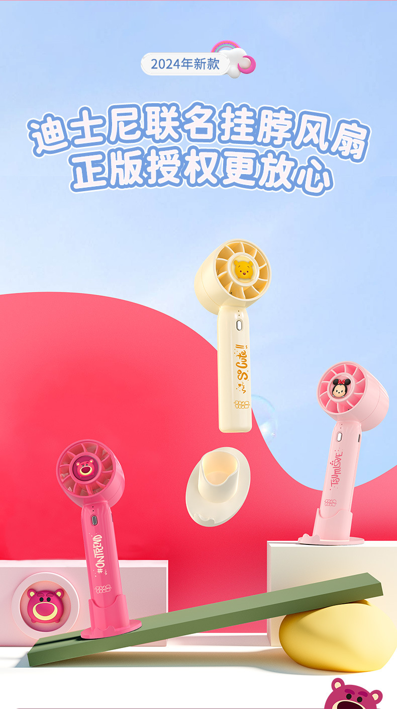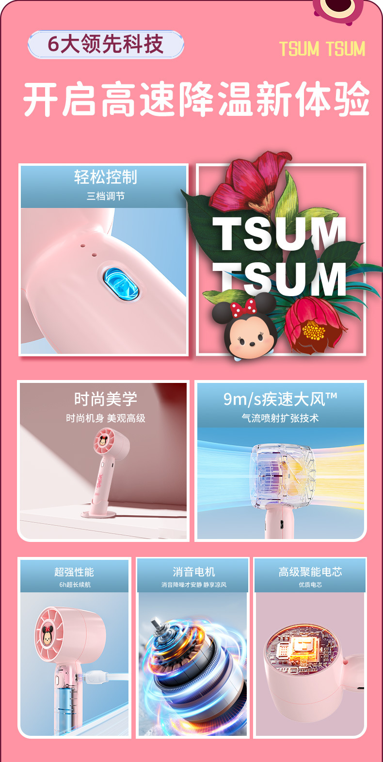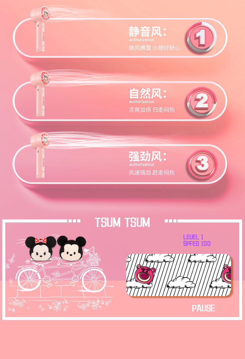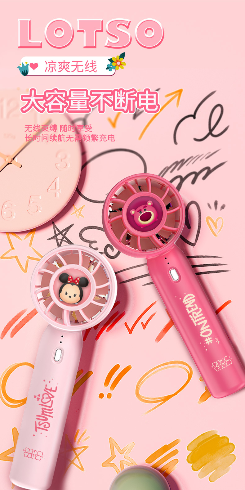 새로운 디즈니 휴대용 선풍기 USB 무소음 강풍 듀얼 배터리 긴 배터리 수명 미니 휴대용 고속 소형 선풍기스토어 가기