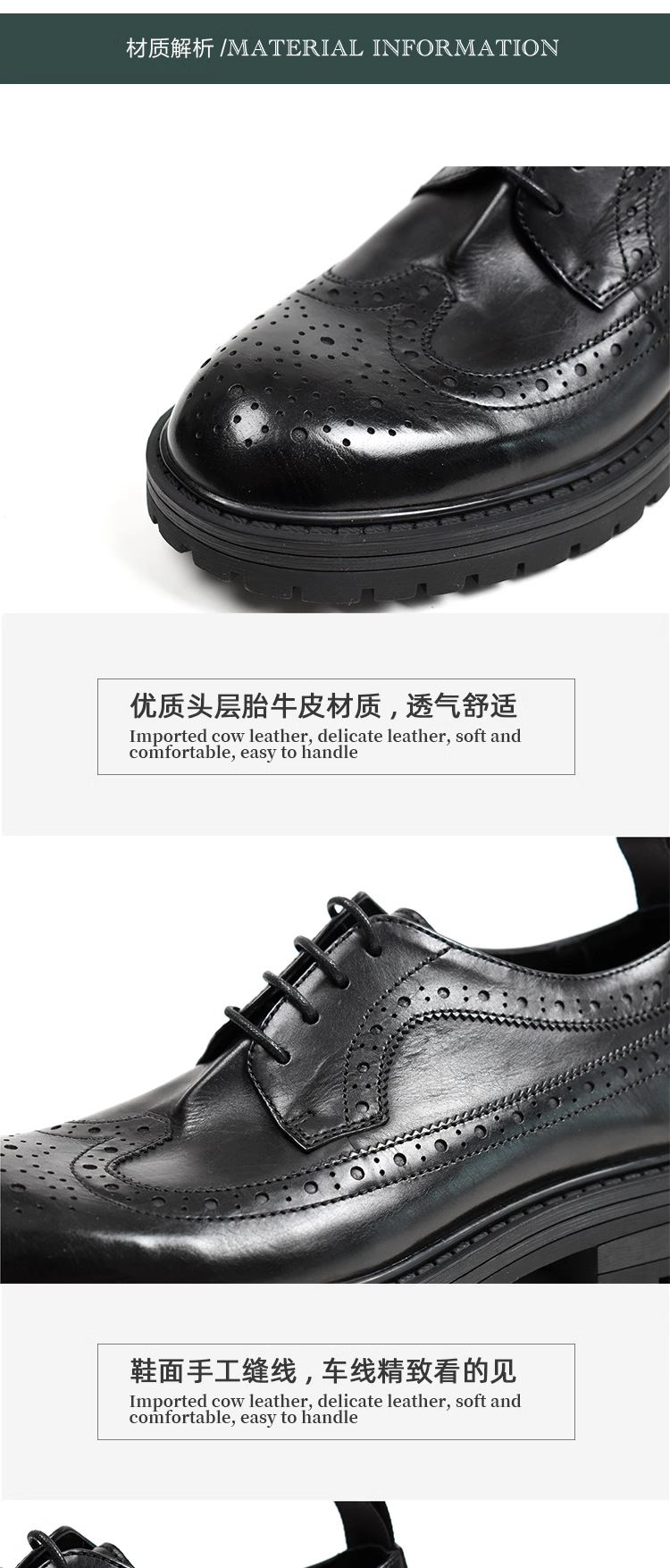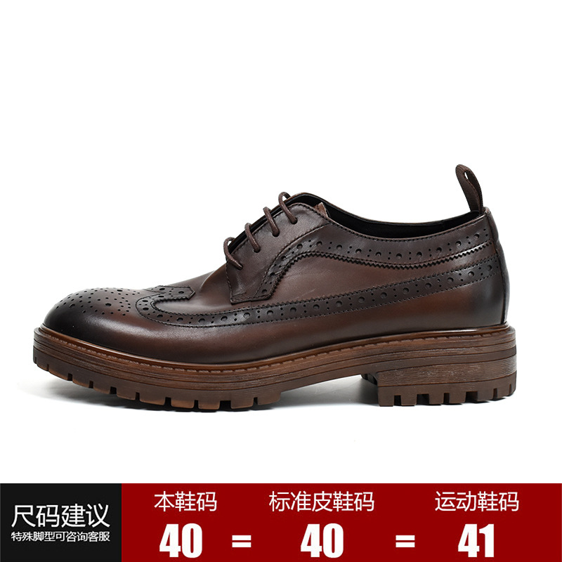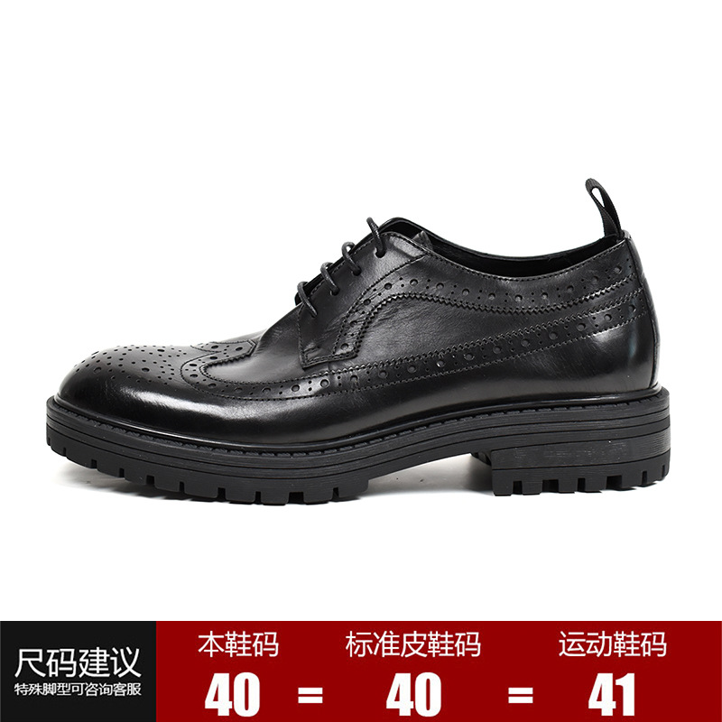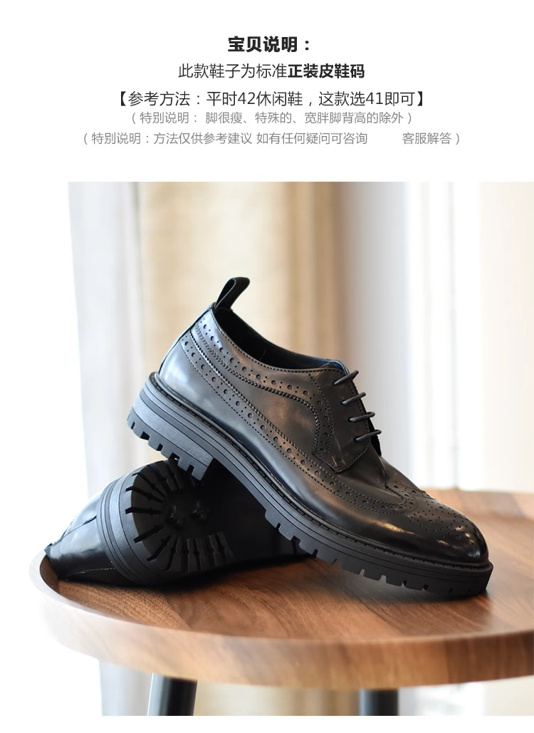 증가 4cm/영국 레트로 브록 조각 라운드 발가락 두꺼운 바닥 비즈니스 캐주얼 가죽 신발 남성 유행 웨딩 슈즈 블랙스토어 가기