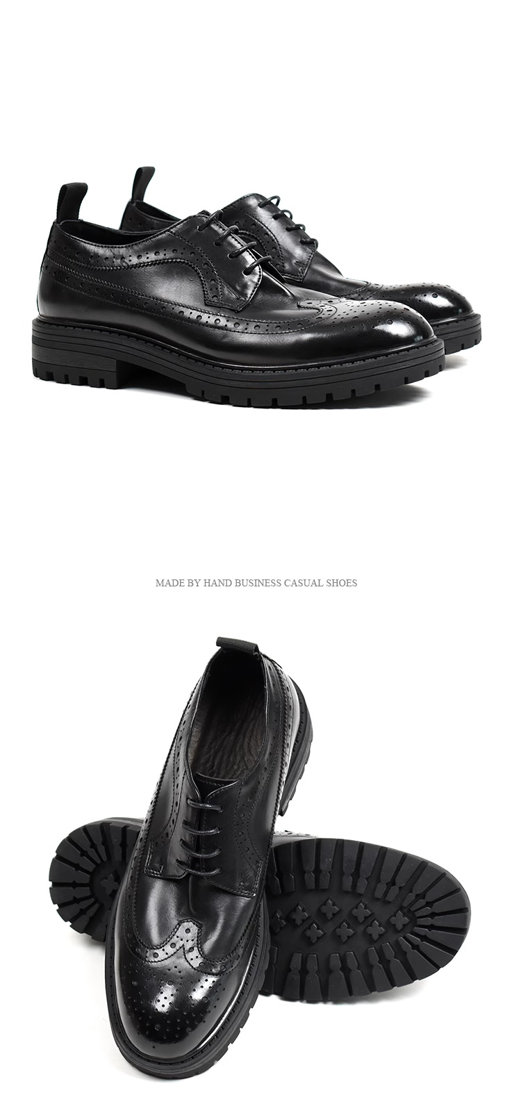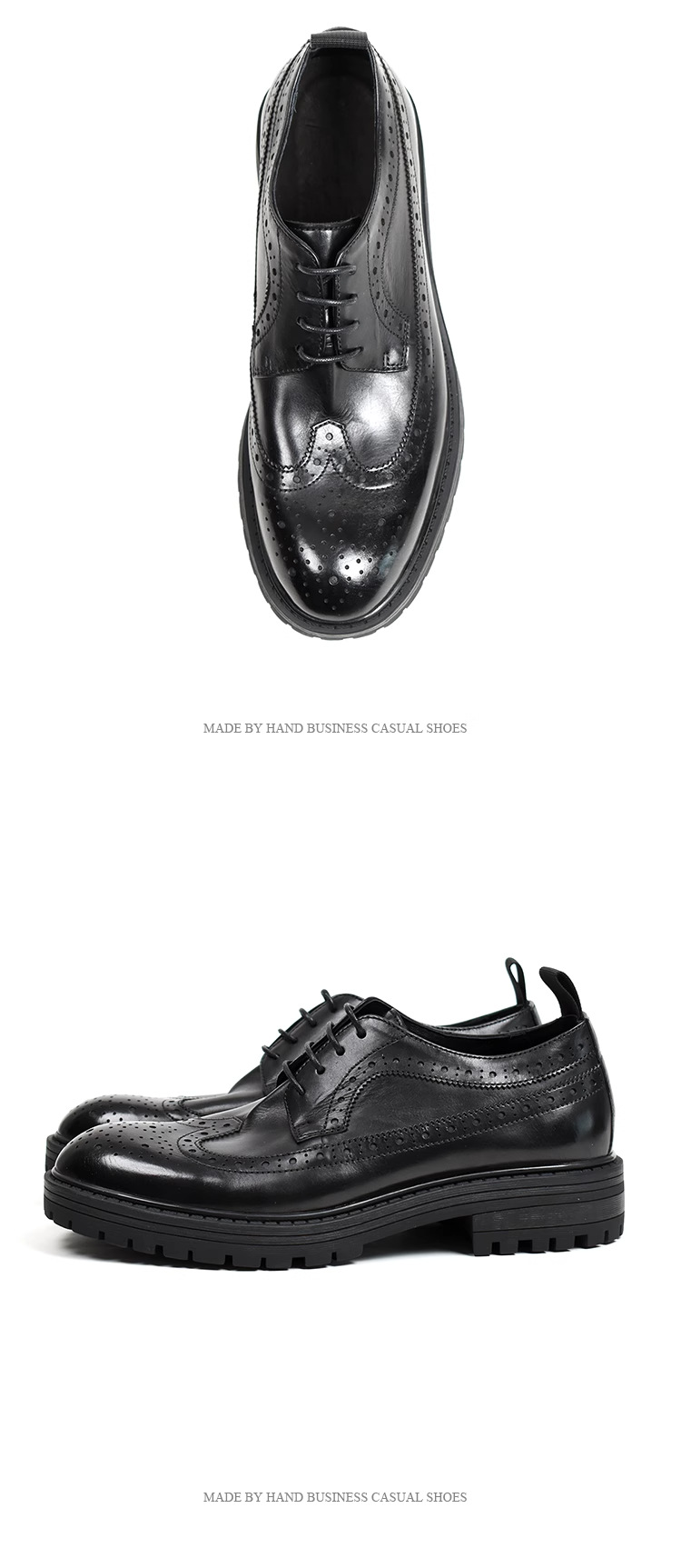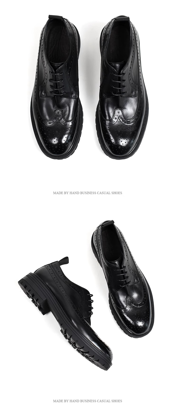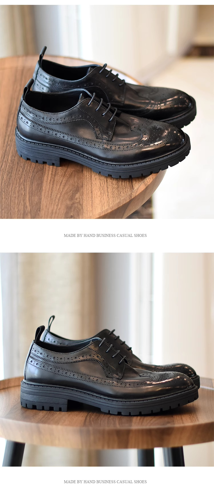 증가 4cm/영국 레트로 브록 조각 라운드 발가락 두꺼운 바닥 비즈니스 캐주얼 가죽 신발 남성 유행 웨딩 슈즈 블랙