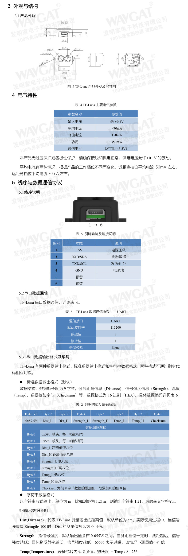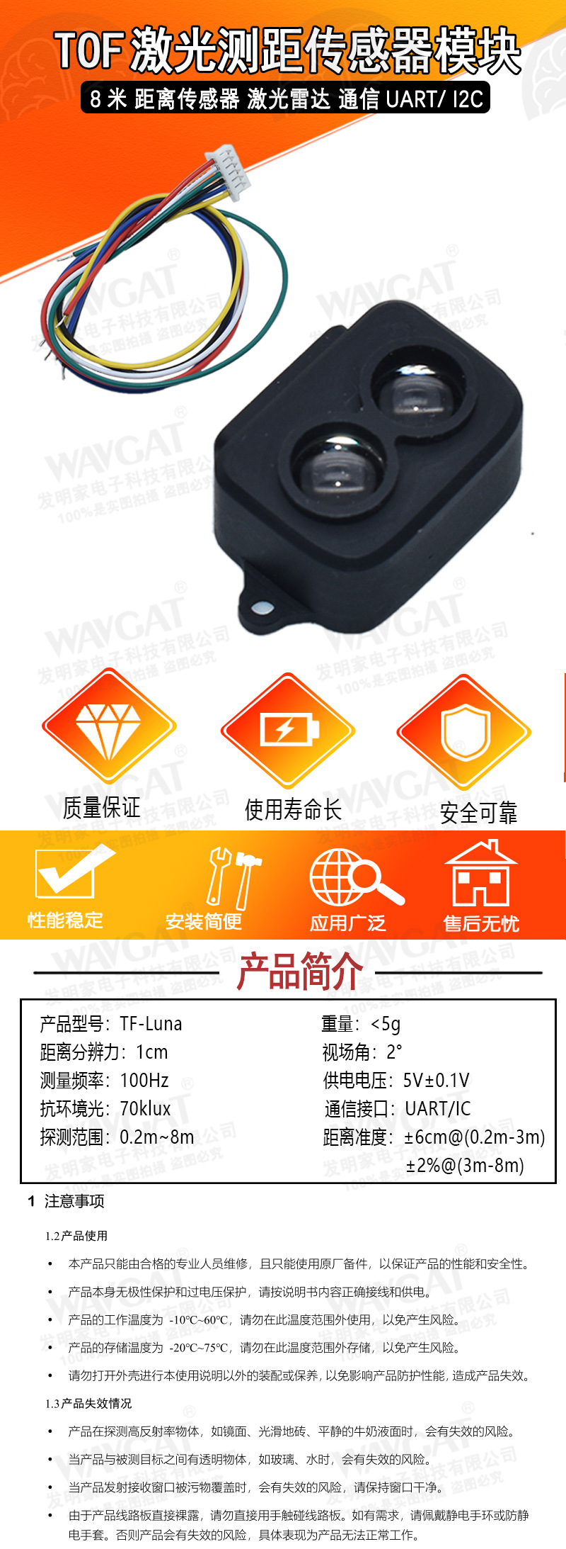 ToF 레이저 범위 센서 모듈 8 미터 거리 센서 라이더 통신 UART/ I2C