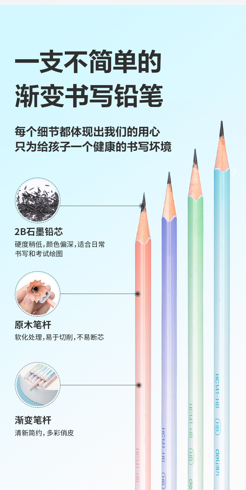 초등학교 어린이 트라이앵글 바 2bHB 시험 컬러 연필을위한 델리 HC141 그라디언트 컬러 연필스토어 가기