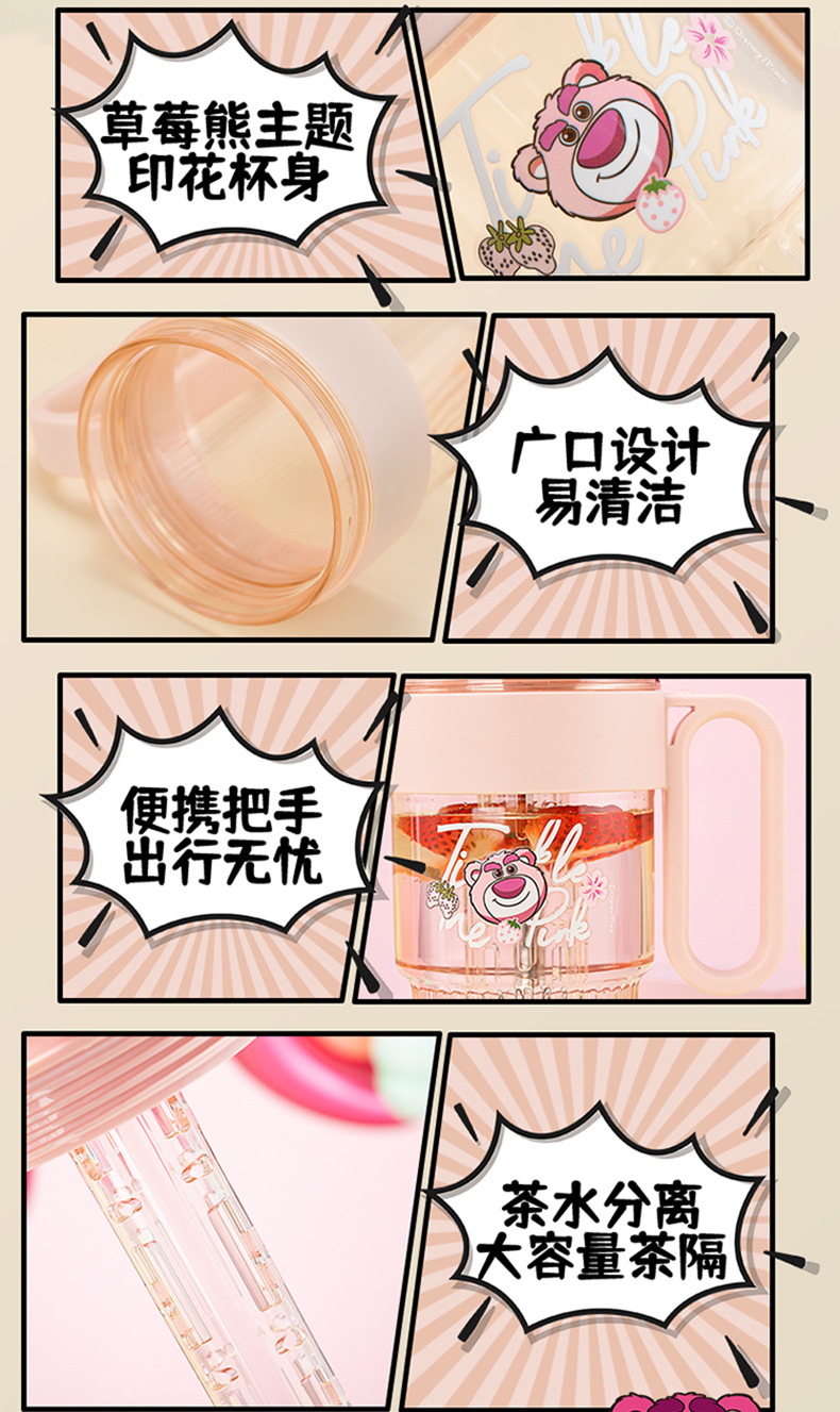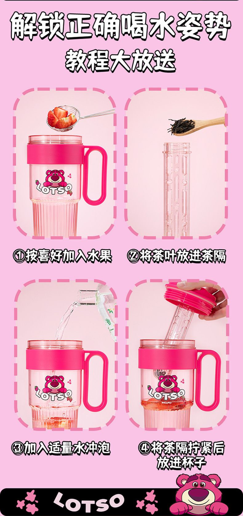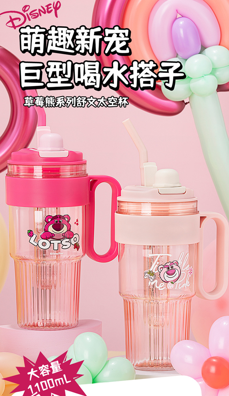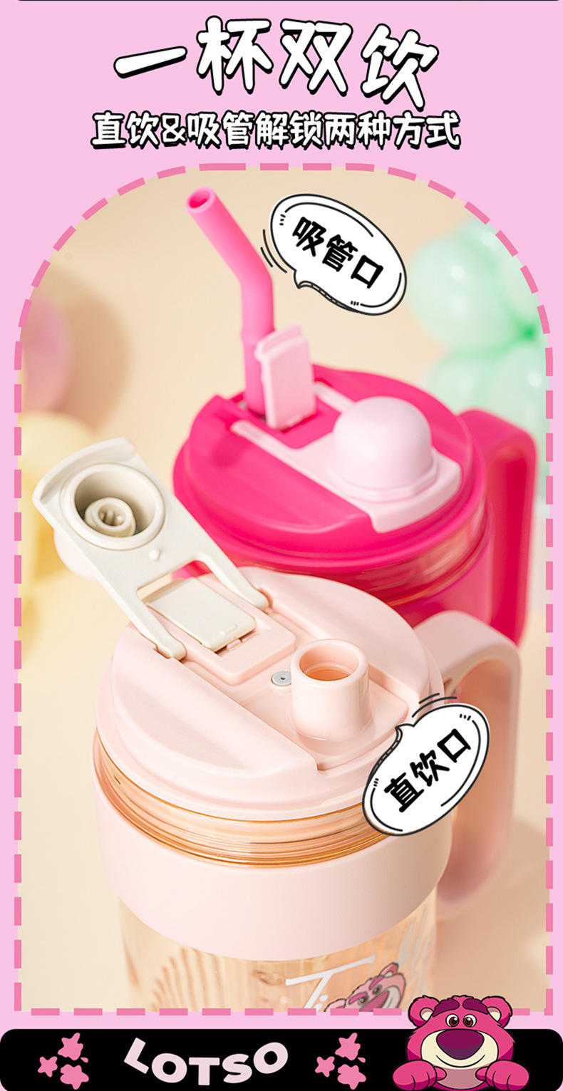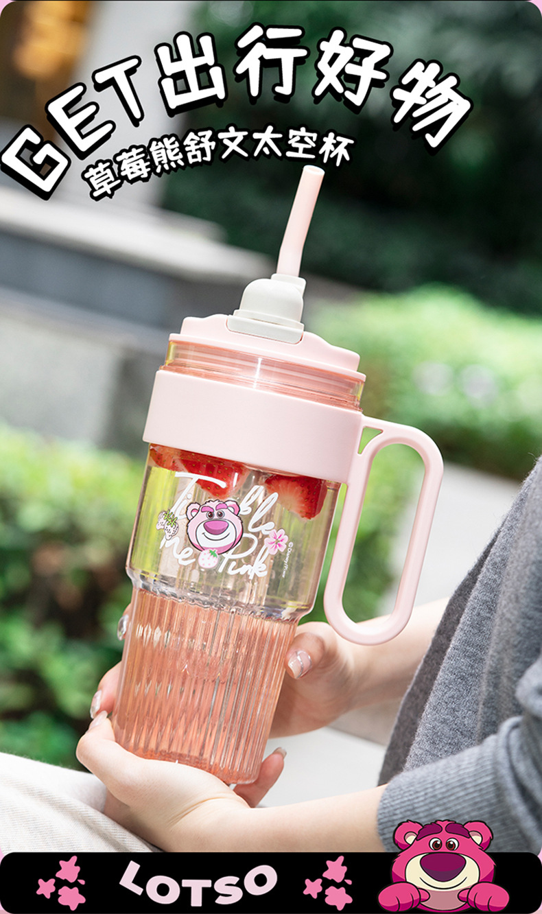 딸기 곰 피카추 슈웬 대용량 공간 플라스틱 컵 트리탄 식품 학년 남자와 여자의 새로운 폭발성 워터 컵스토어 가기