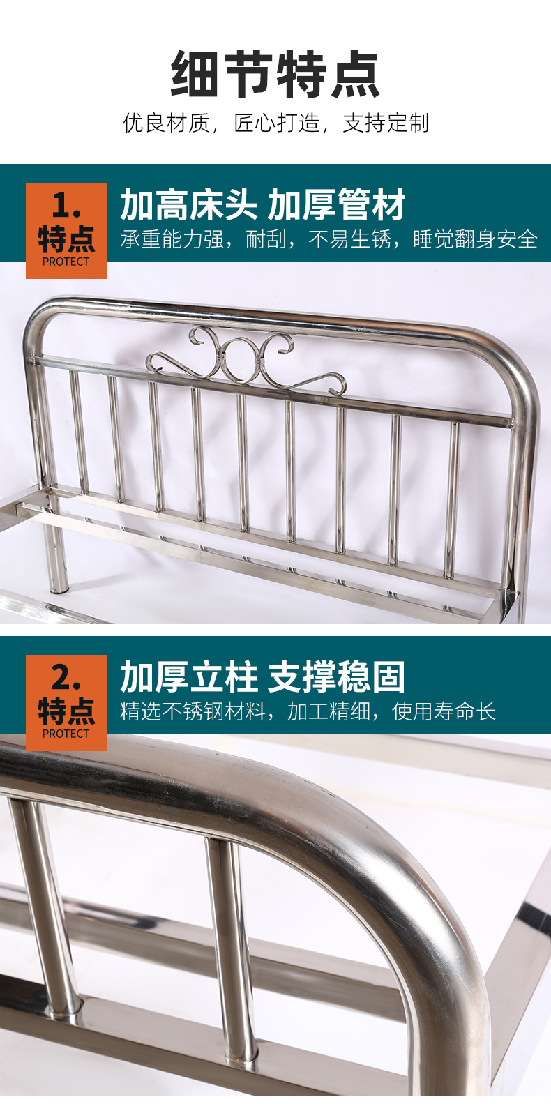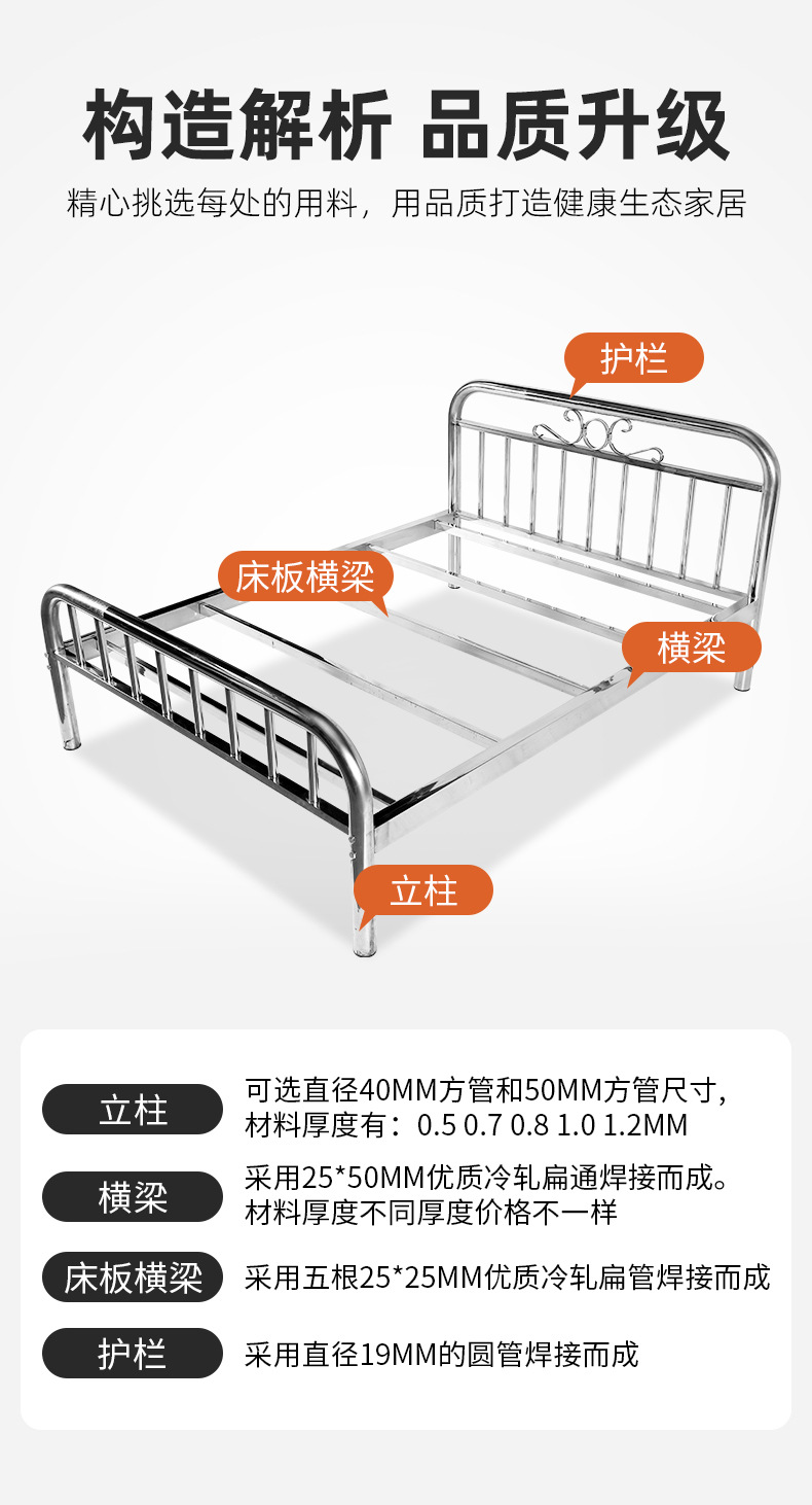 현대 간단한 스테인레스 스틸 침대 아이언 침대 1.8 m 대담한 경제적 인 임대 아파트 더블 침대 싱글 침대스토어 가기