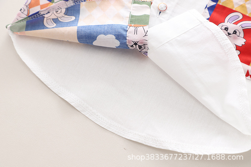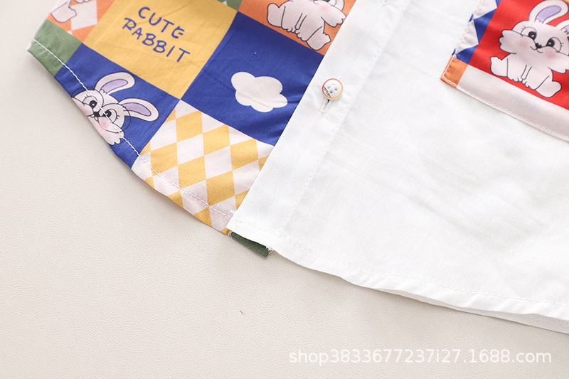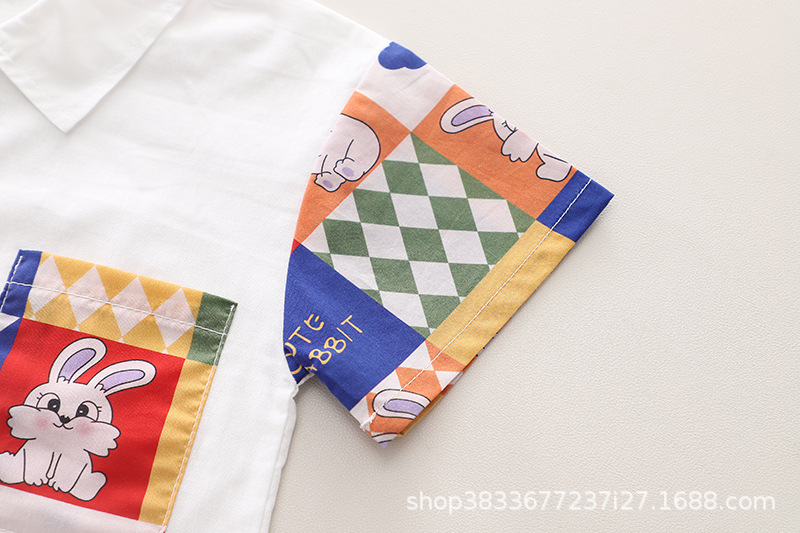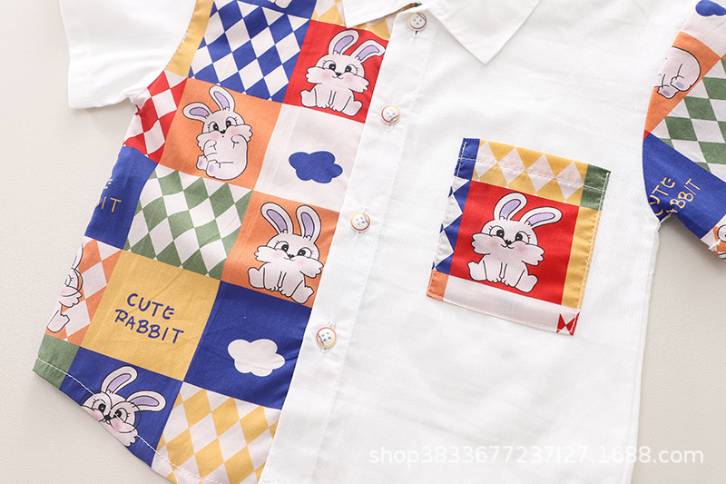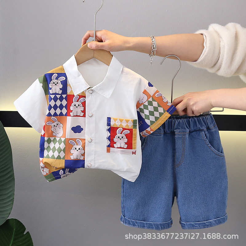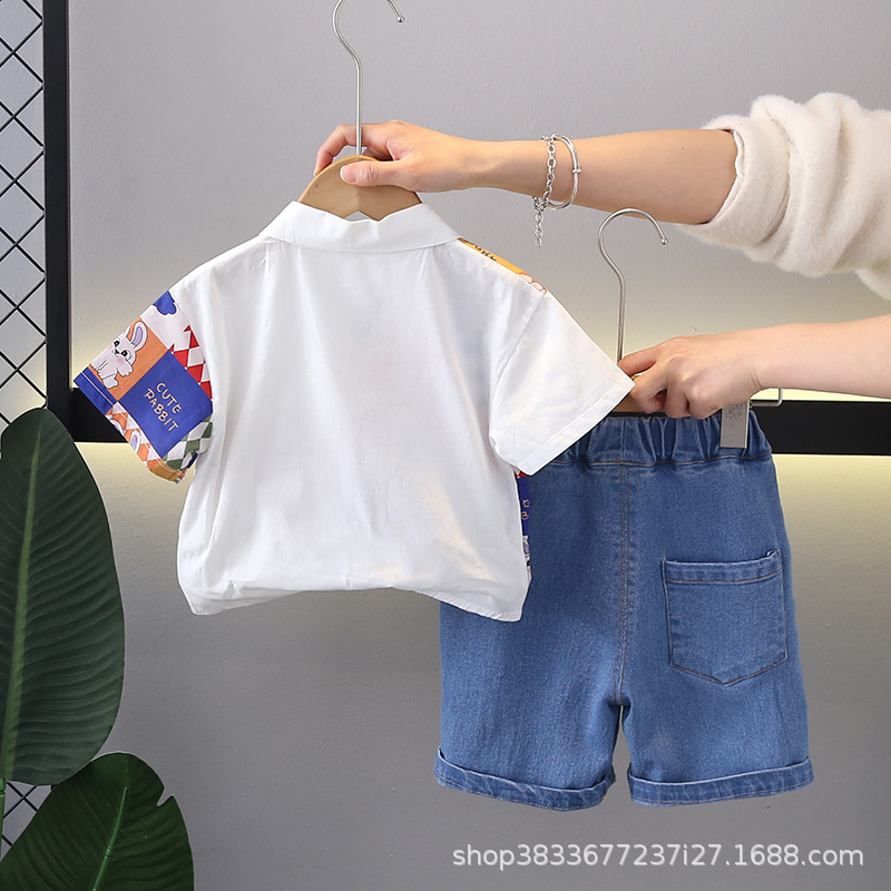 소년 컬러 매칭 옷깃 셔츠 짧은 소매 세트 여름 새로운 남성 아기 캐주얼 반바지 2 종 헤어 세트스토어 가기
