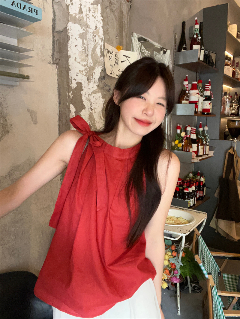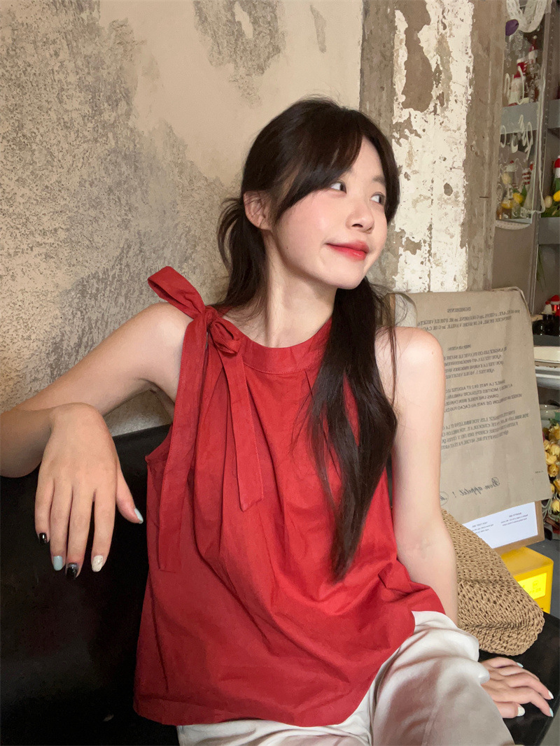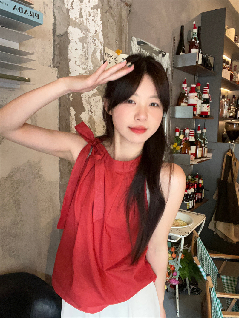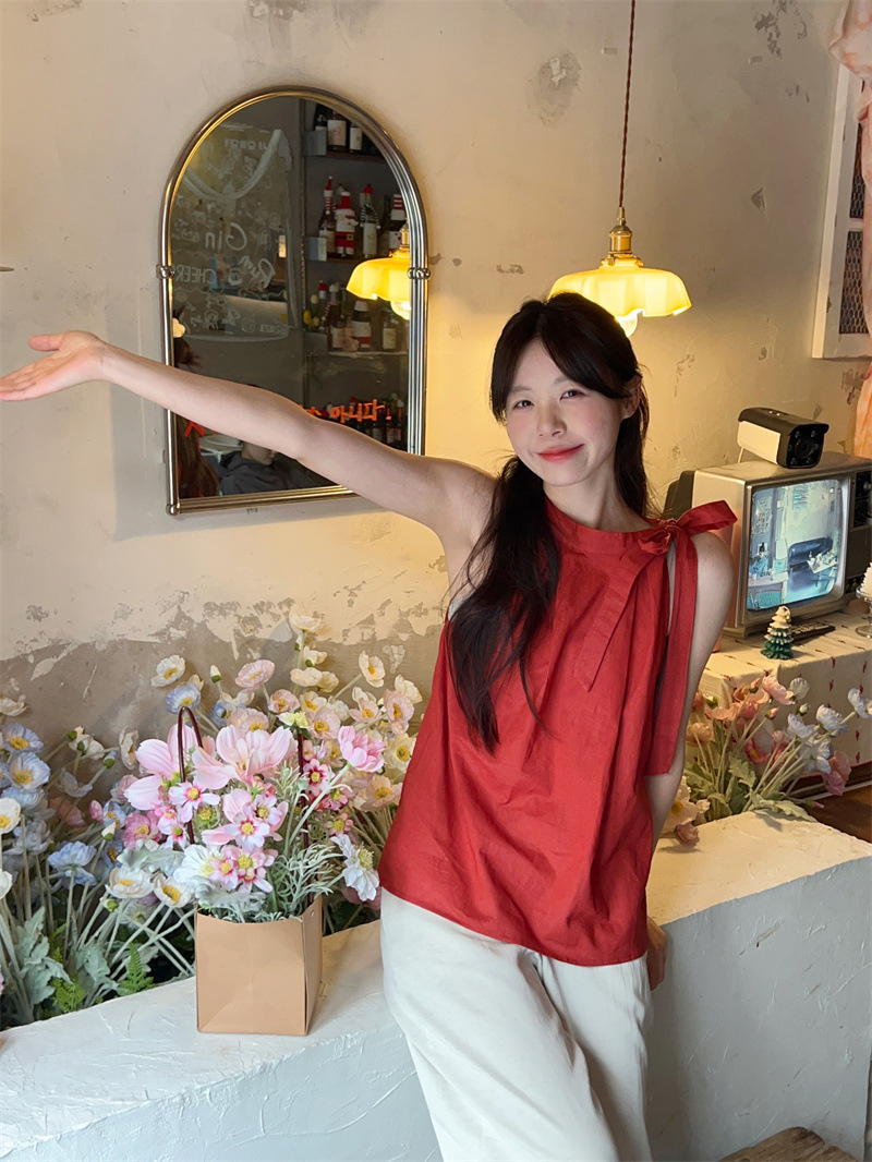 리얼 샷 ~ 여름 새로운 달콤한 교수형 넥 레이스 업 민소매 조끼 스트레이트 튜브 수직 걸레 팬츠 2 피스 63354스토어 가기