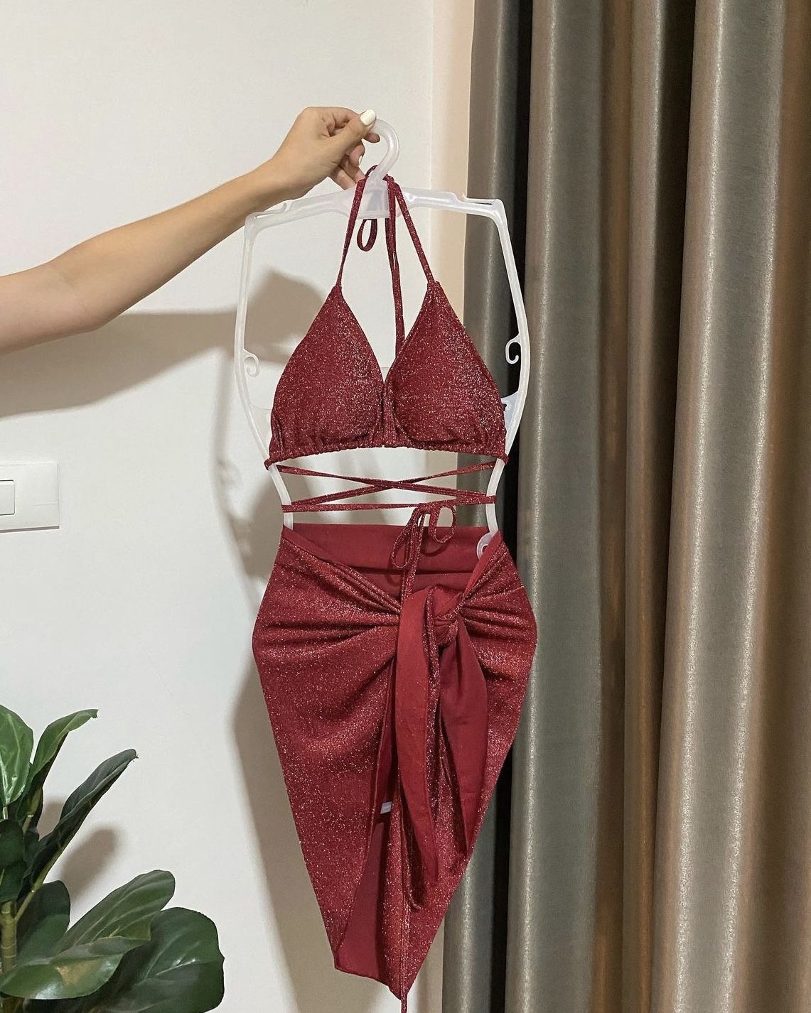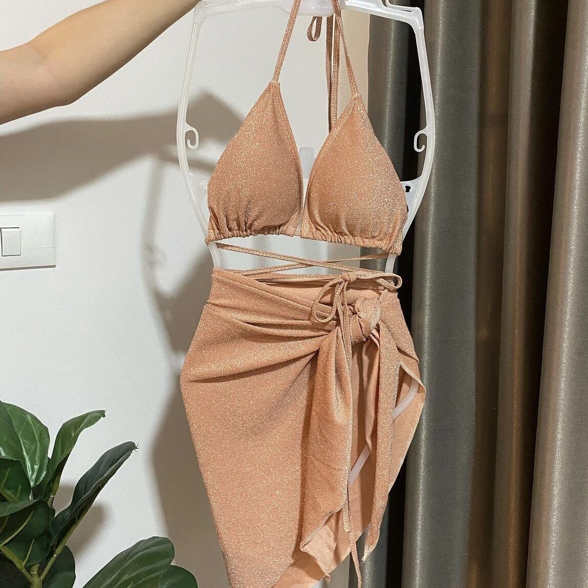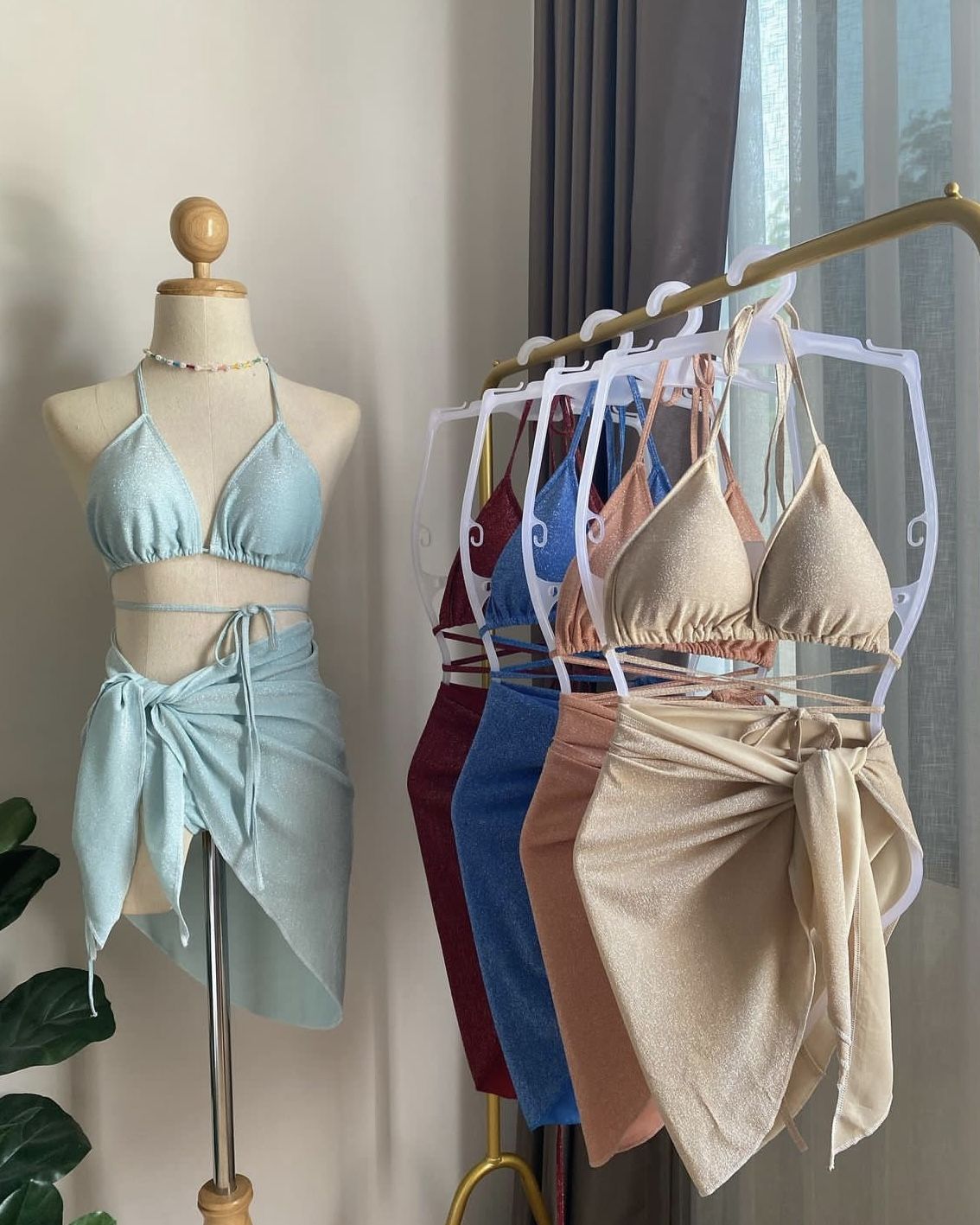 수영복 여성 Ins 유럽과 미국 분할 순수 비키니 3 피스 세트 섹시한 크기 가슴 모임 해변 휴일 온천스토어 가기