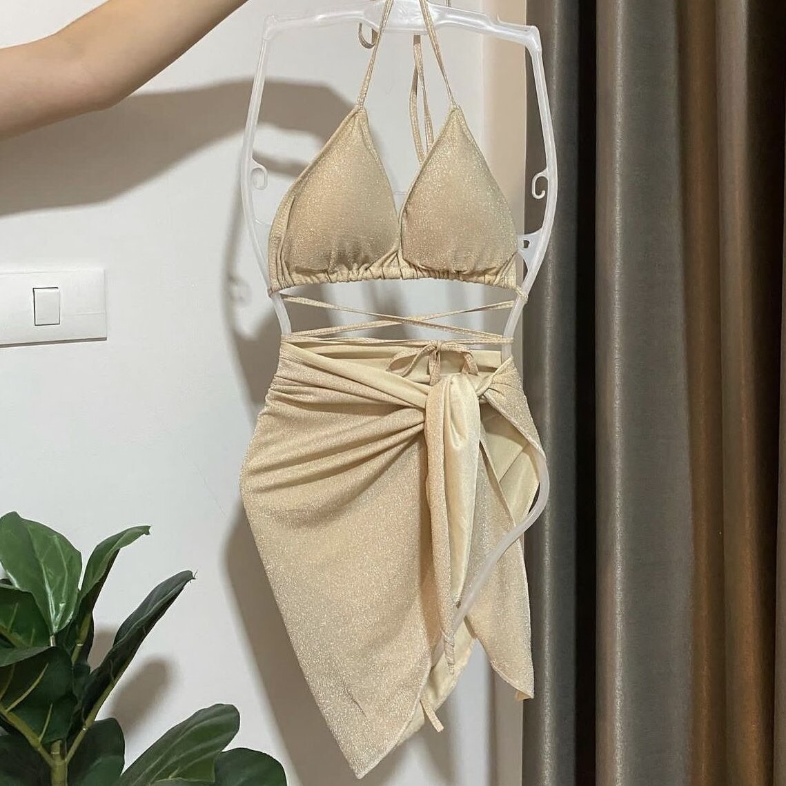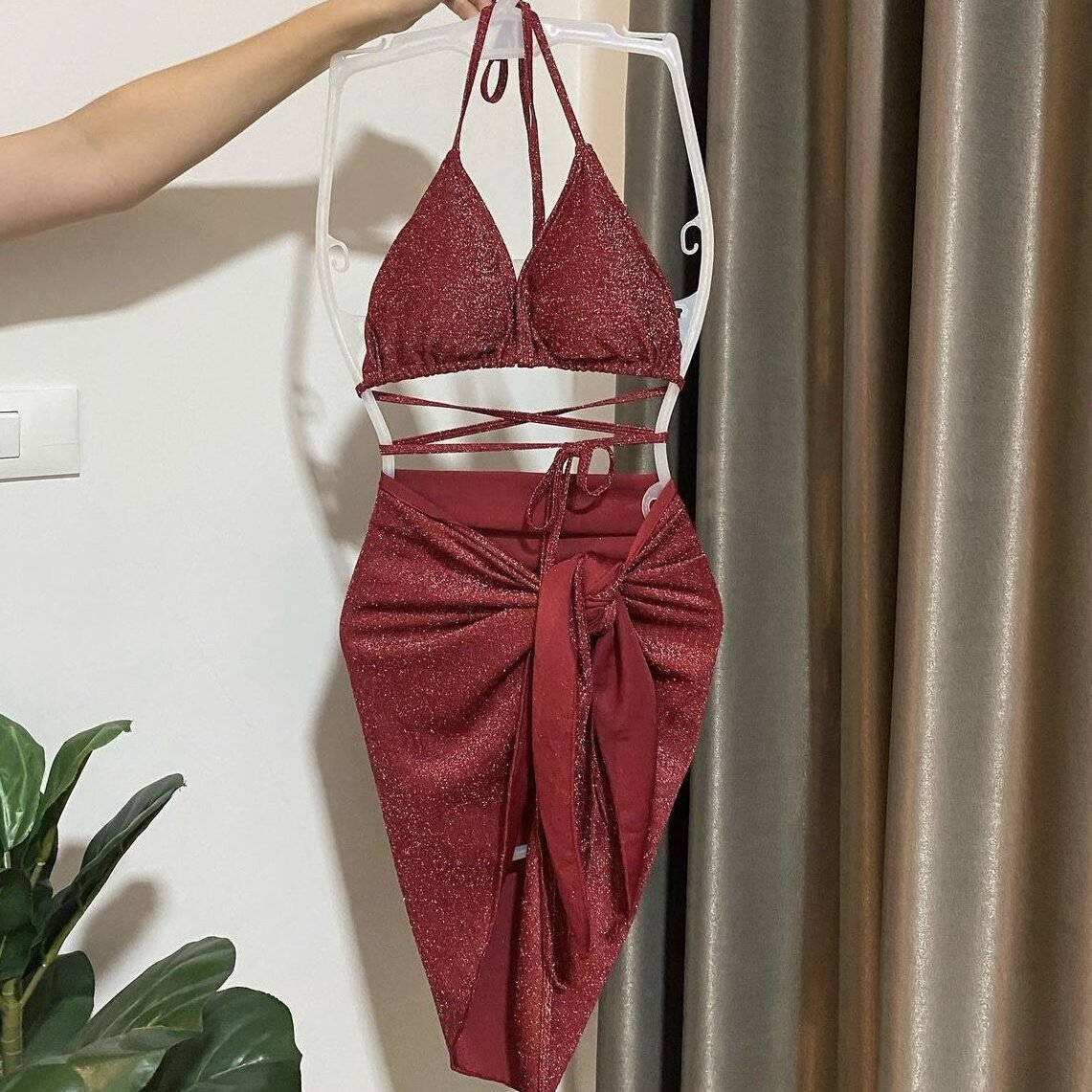 수영복 여성 Ins 유럽과 미국 분할 순수 비키니 3 피스 세트 섹시한 크기 가슴 모임 해변 휴일 온천