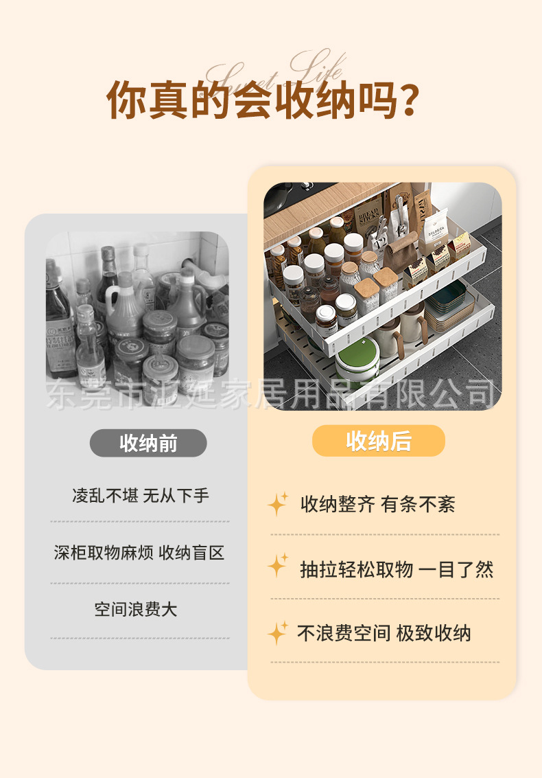 확장형 캐비닛 서랍형 주방 수납 선반 싱크대 아래 깊은 캐비닛 접시 서랍형 주방용품스토어 가기