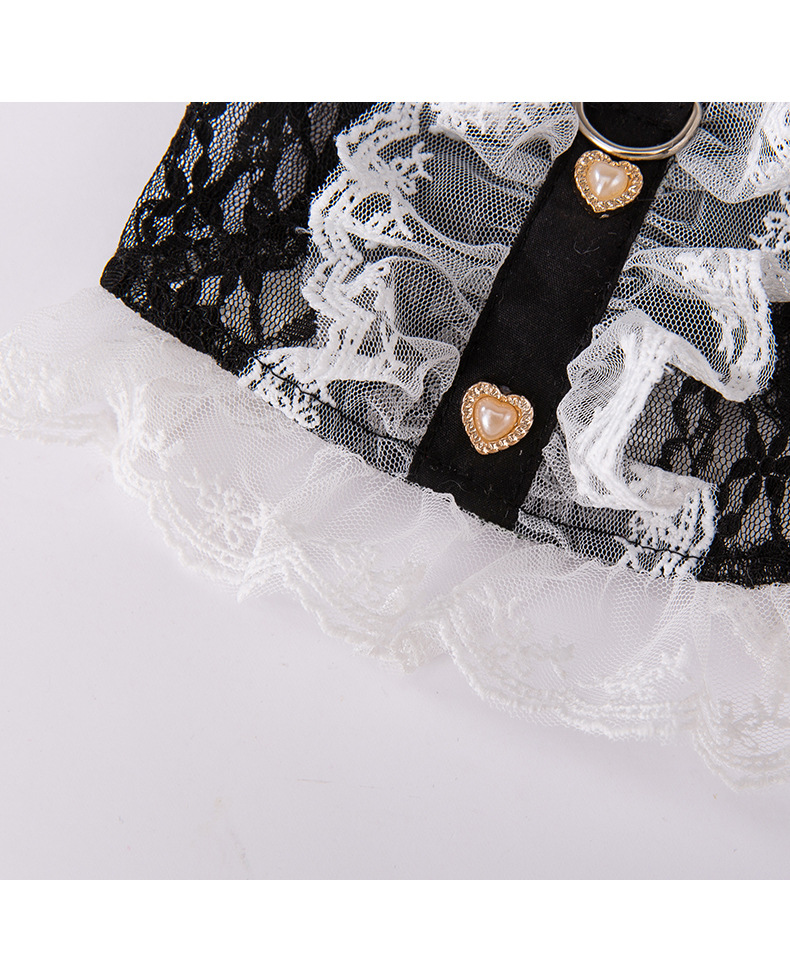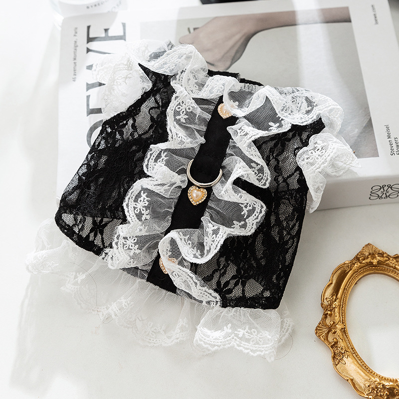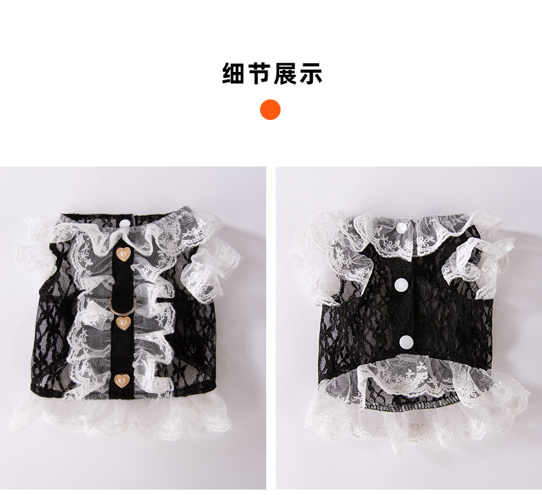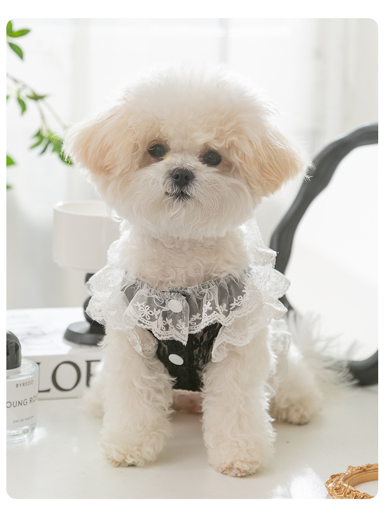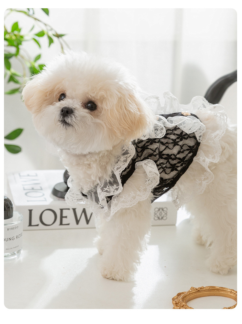 봄과 여름 개 섹시한 흑백 레이스 견인 조끼 중소 개 고양이 테디 애완견 옷