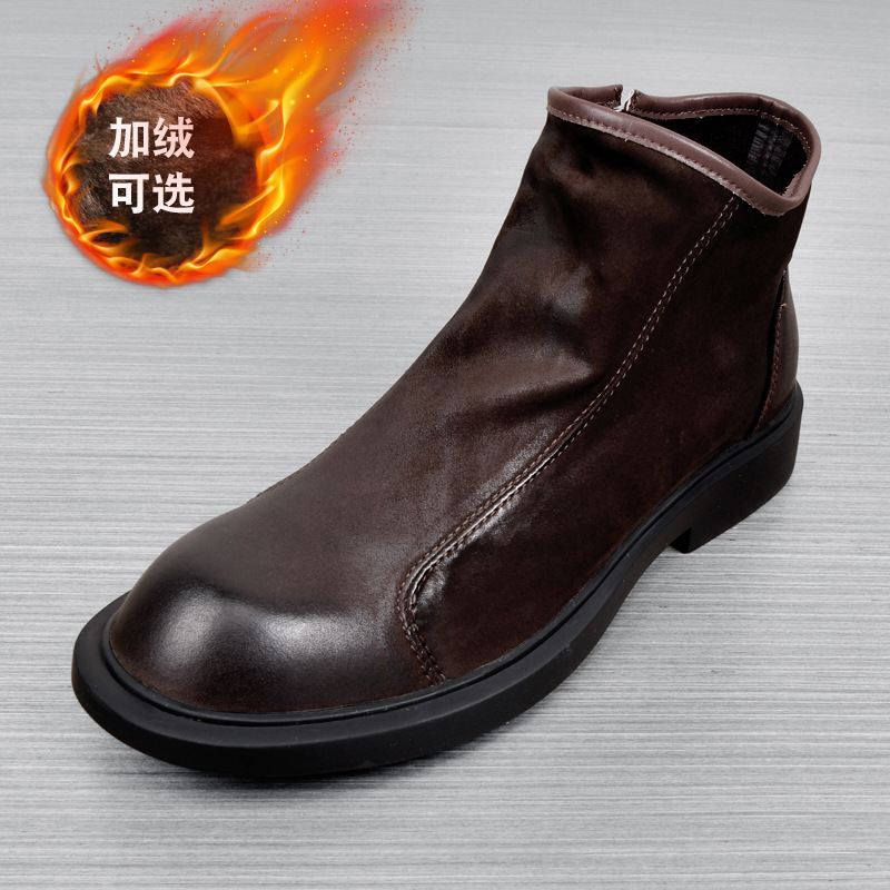 1층 소가죽 마틴 부츠 남성 신발 봄 통기성 미드탑 캐주얼 가죽 부츠 겨울 스타일 플러스 벨벳 트렌디 다용도 마틴 부츠스토어 가기