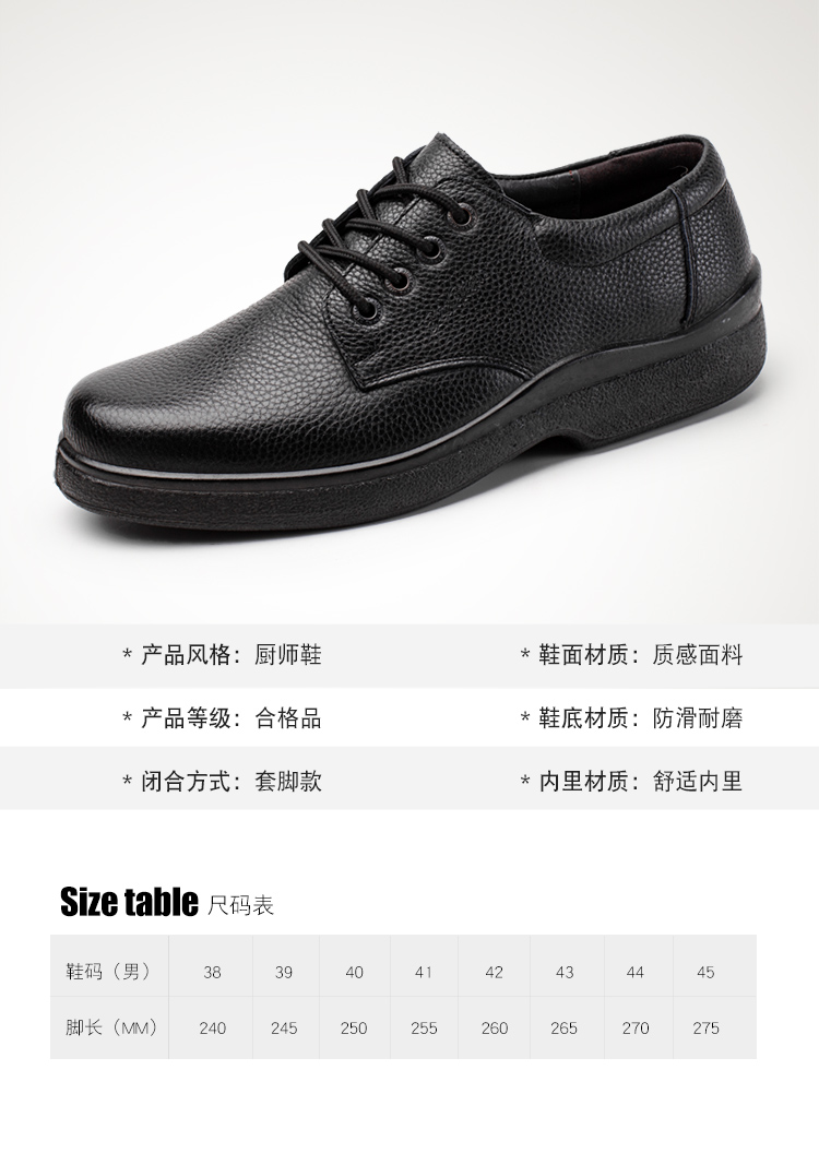요리사 신발 남성 통기성 탈취제 주방 신발 내마모성 미끄럼 방지 방수 작업 신발 주방 가죽 신발