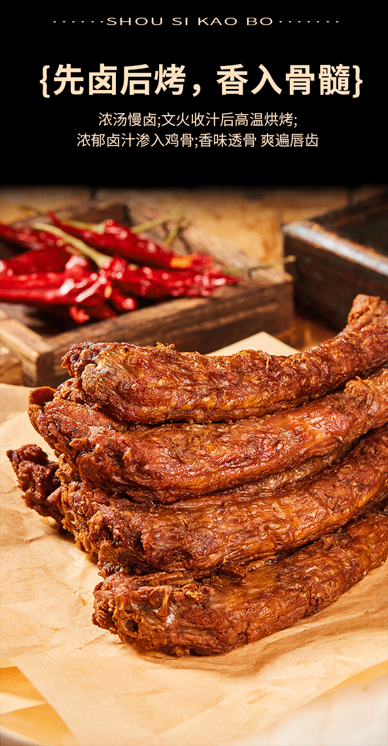 자연 상점 손으로 찢어진 로스트 넥 전체 매운 닭 목 절인 고기 스낵 식품 도매스토어 가기