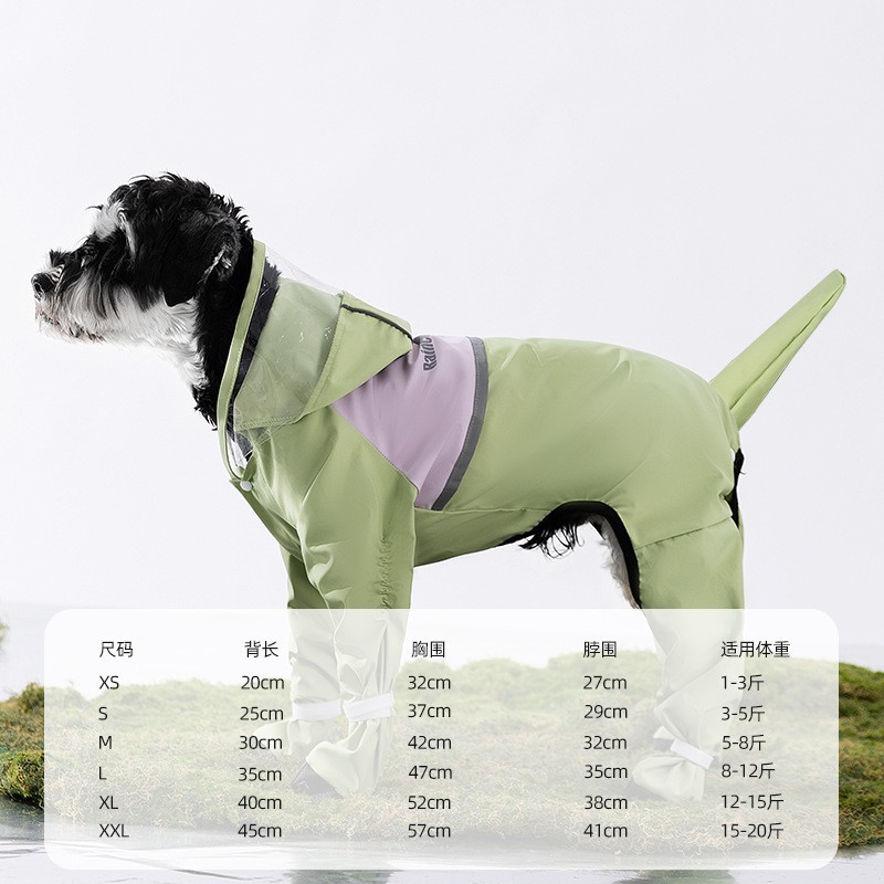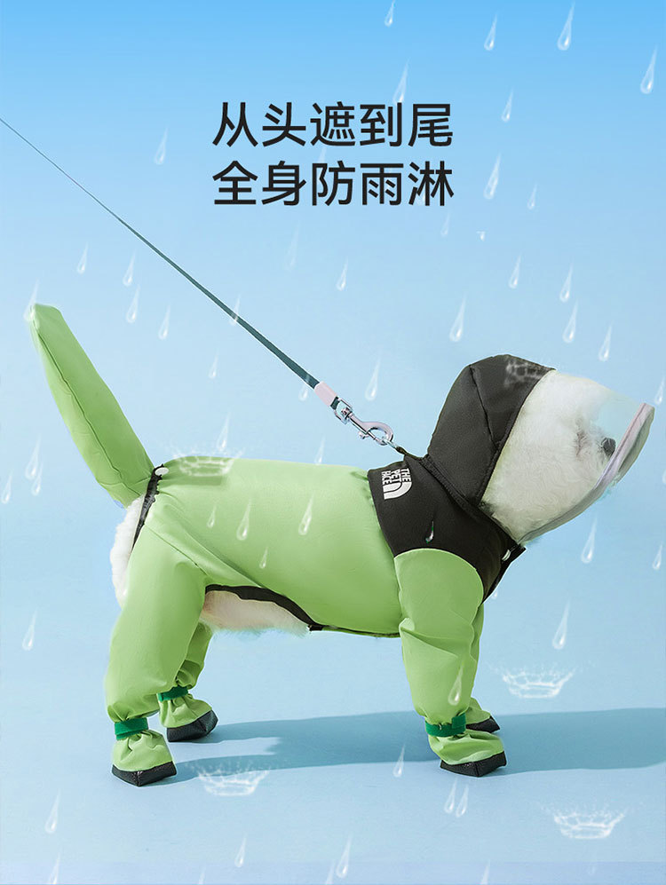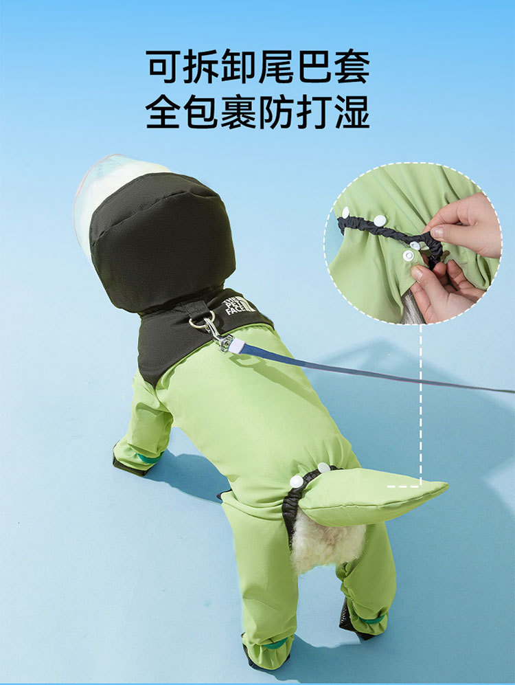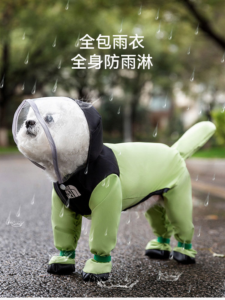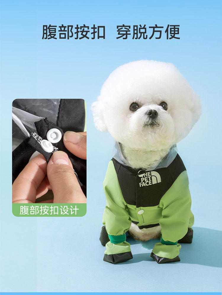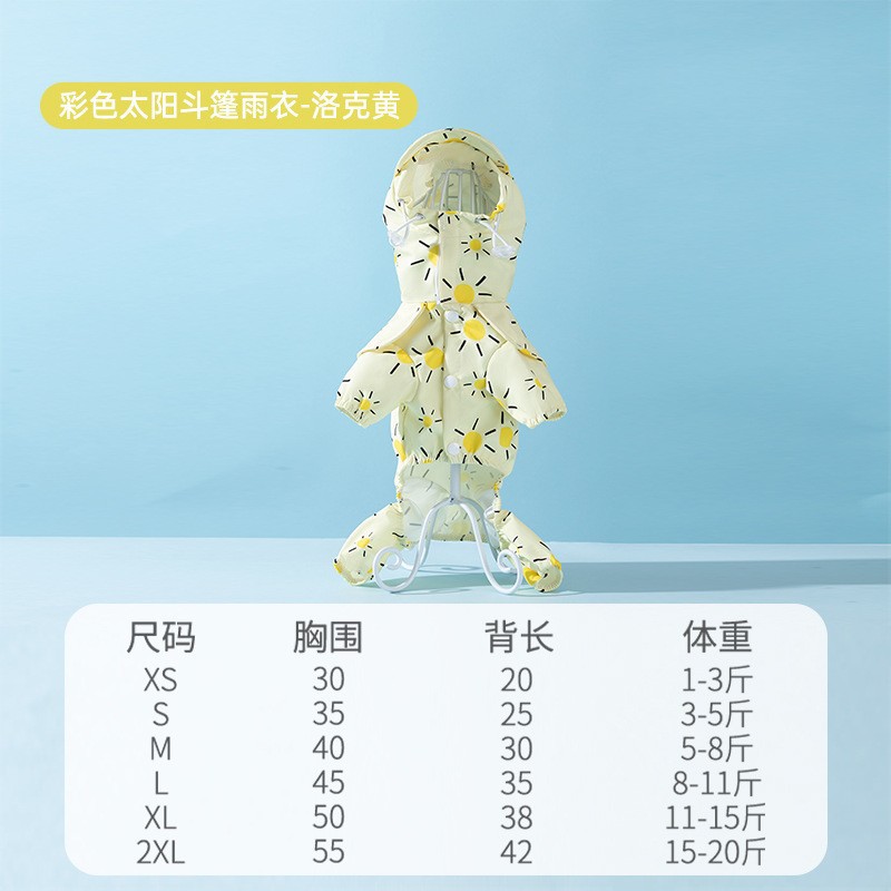 간단한 패션 바느질 다리 네 다리 견인 비옷 작은 개 비오는 계절 방수 여름 애완 동물 개 옷