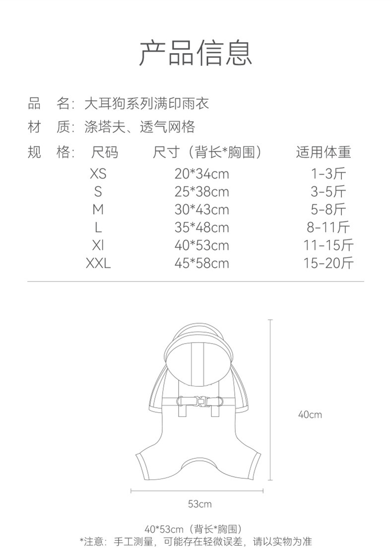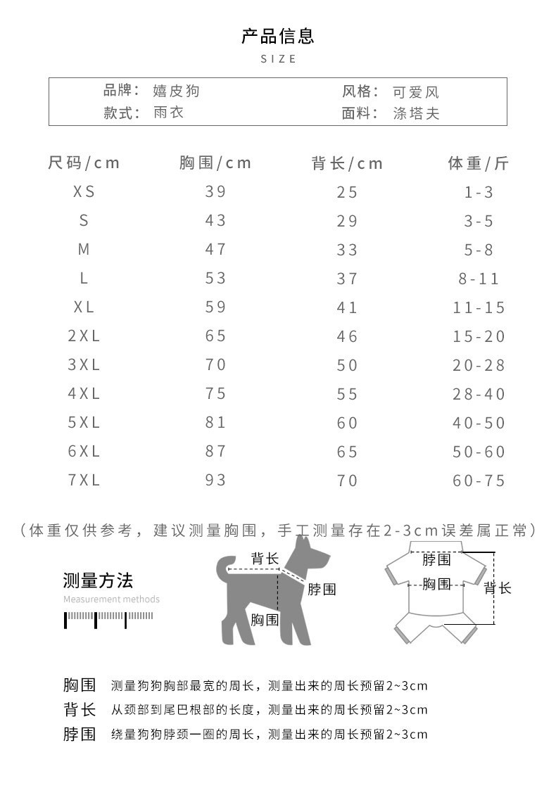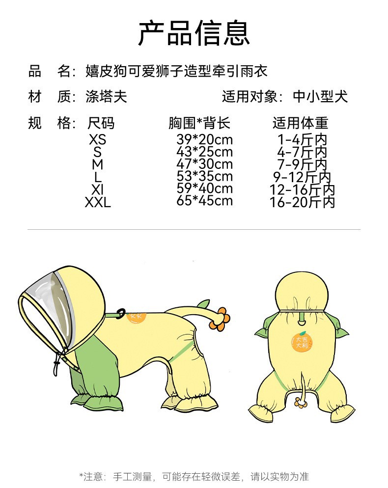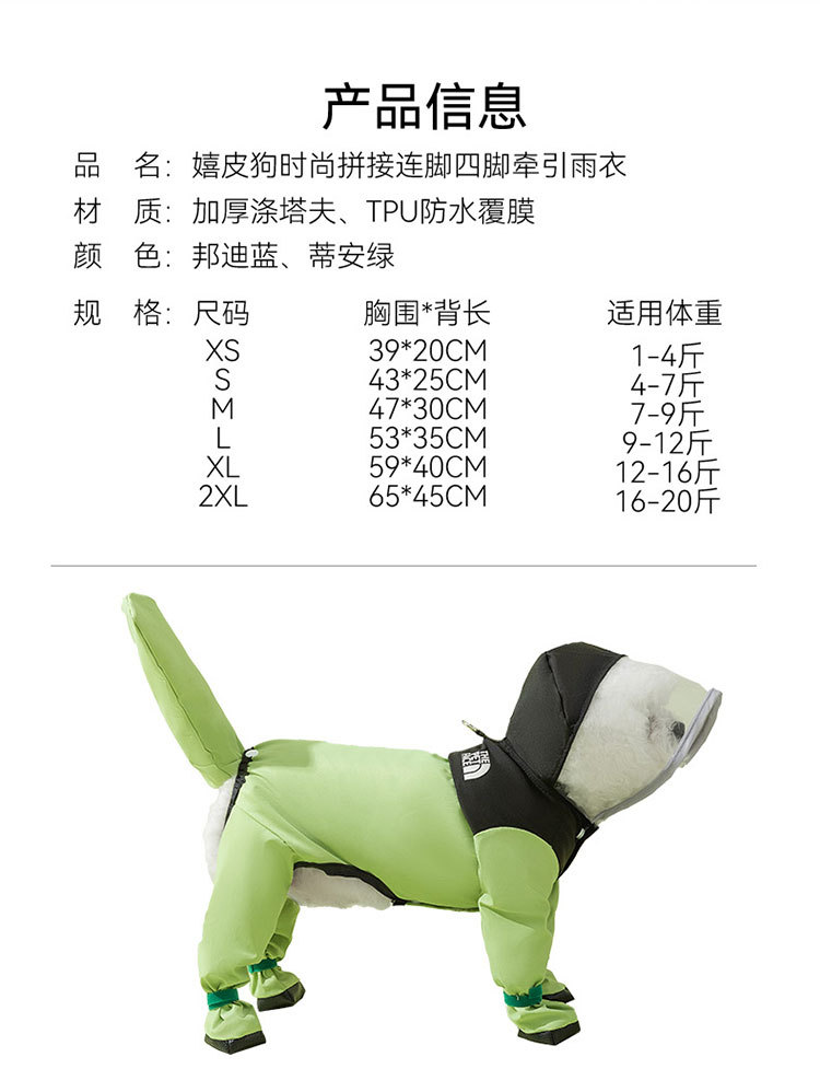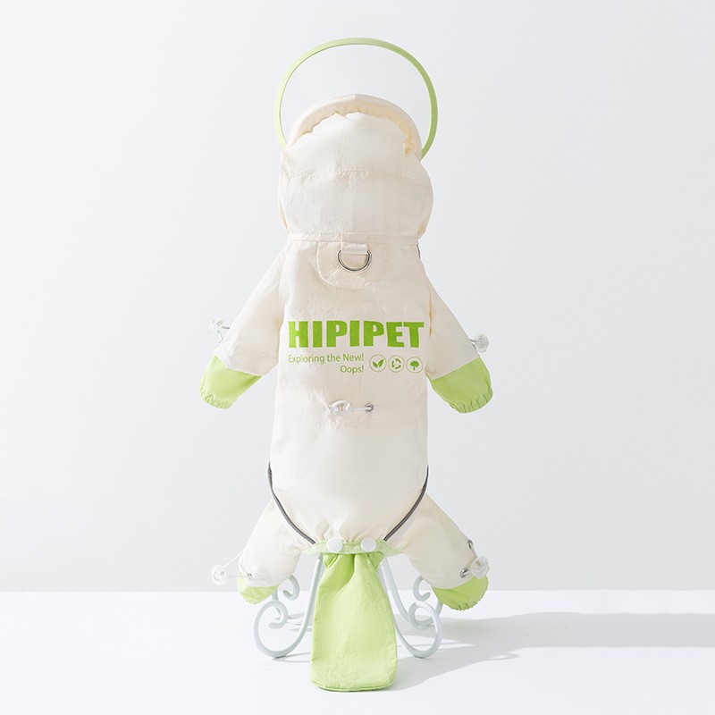 간단한 패션 바느질 다리 네 다리 견인 비옷 작은 개 비오는 계절 방수 여름 애완 동물 개 옷