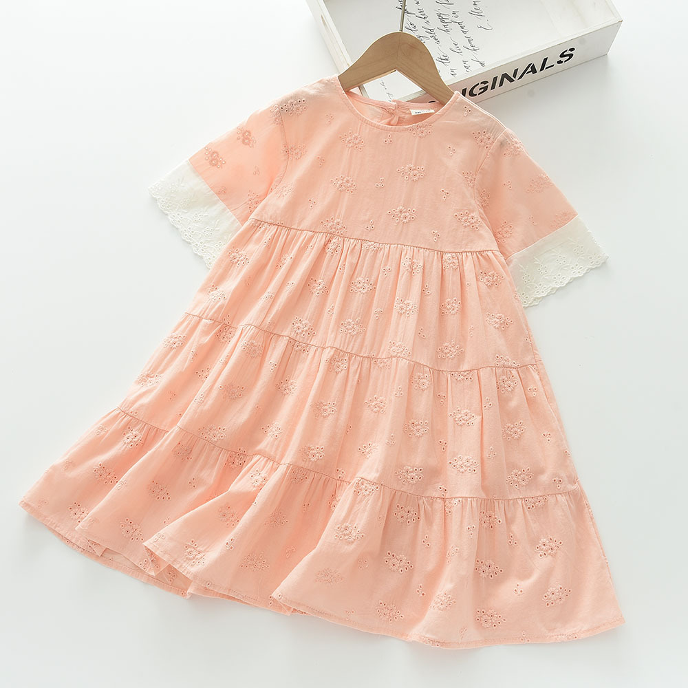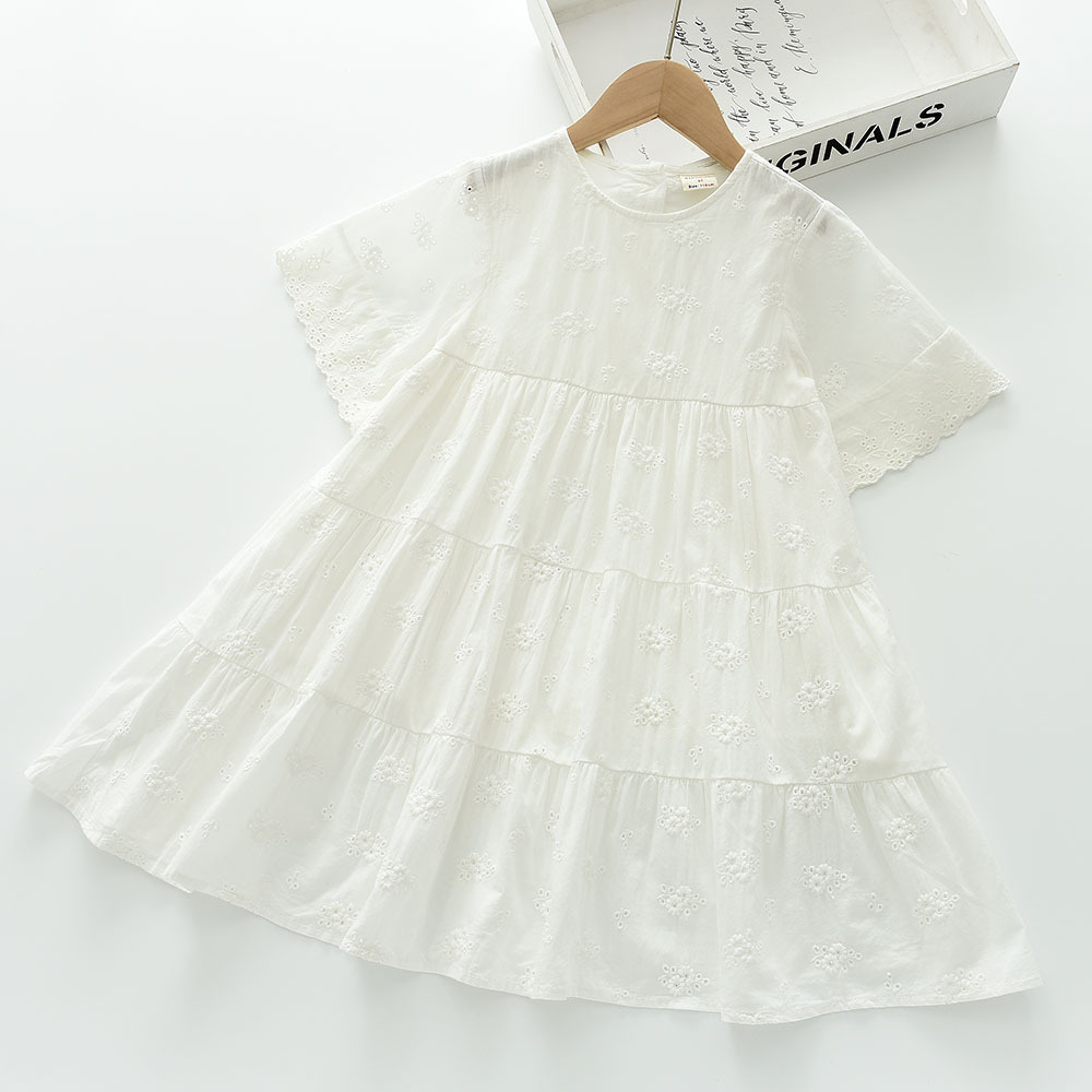 2024夏季新款 花朵绣花 女童纯棉圆领短袖连衣裙