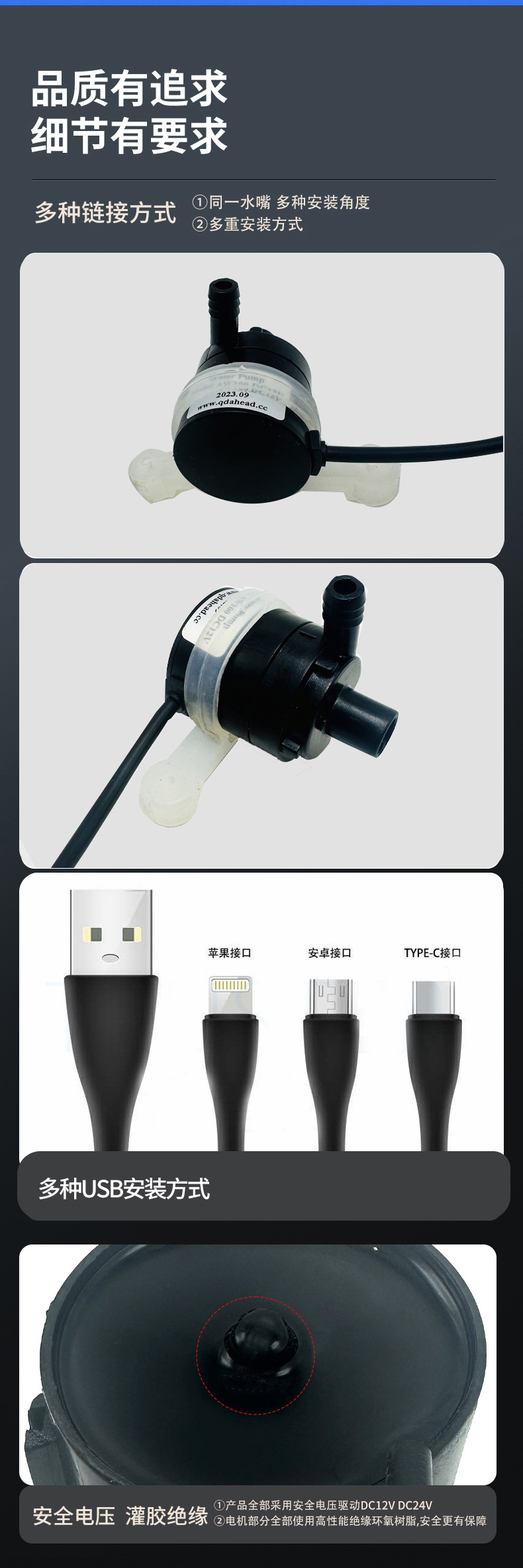 어항 가압 산소 펌프 워터 펌프 수냉식 순환 DC 브러시리스 태양광 USB 수경재배 펌프스토어 가기