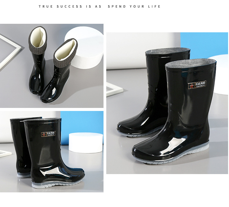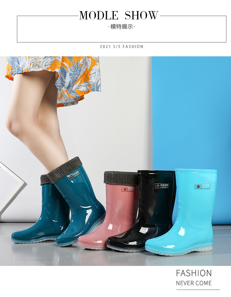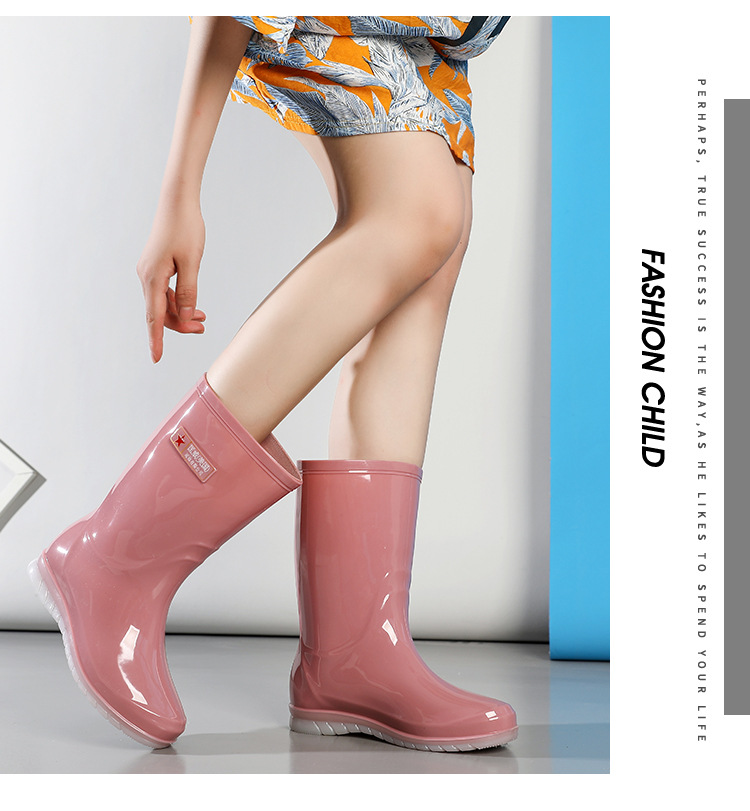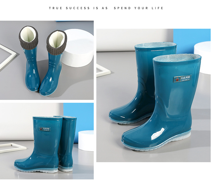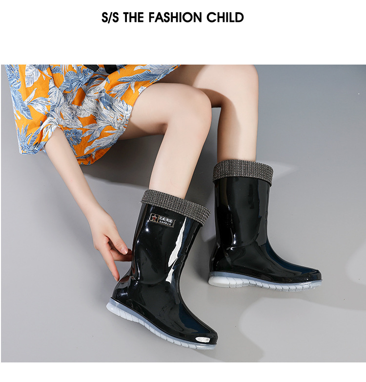 장화 여성용 방수 부드러운 바닥 물 신발 중간 튜브 유행 짧은 장화 학생 장화 비 슬립 따뜻한 새 긴 신발스토어 가기